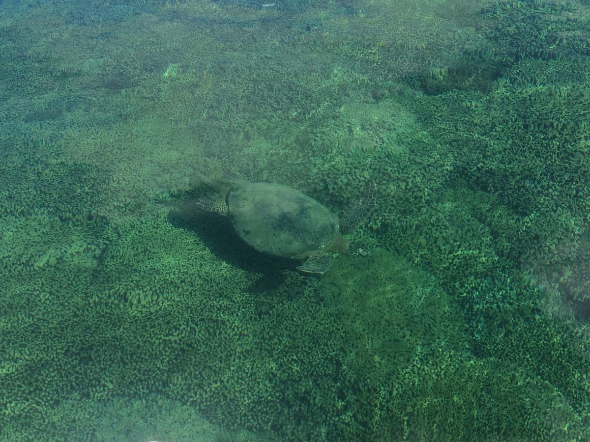 このときは泳いでいるところにちょうどウミガメが寝ていた?のかじっとしていたのですごく近くで見ることができて