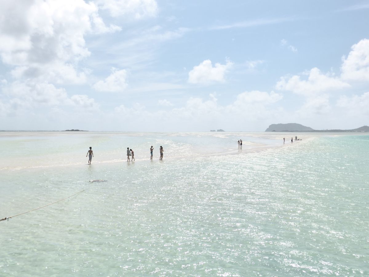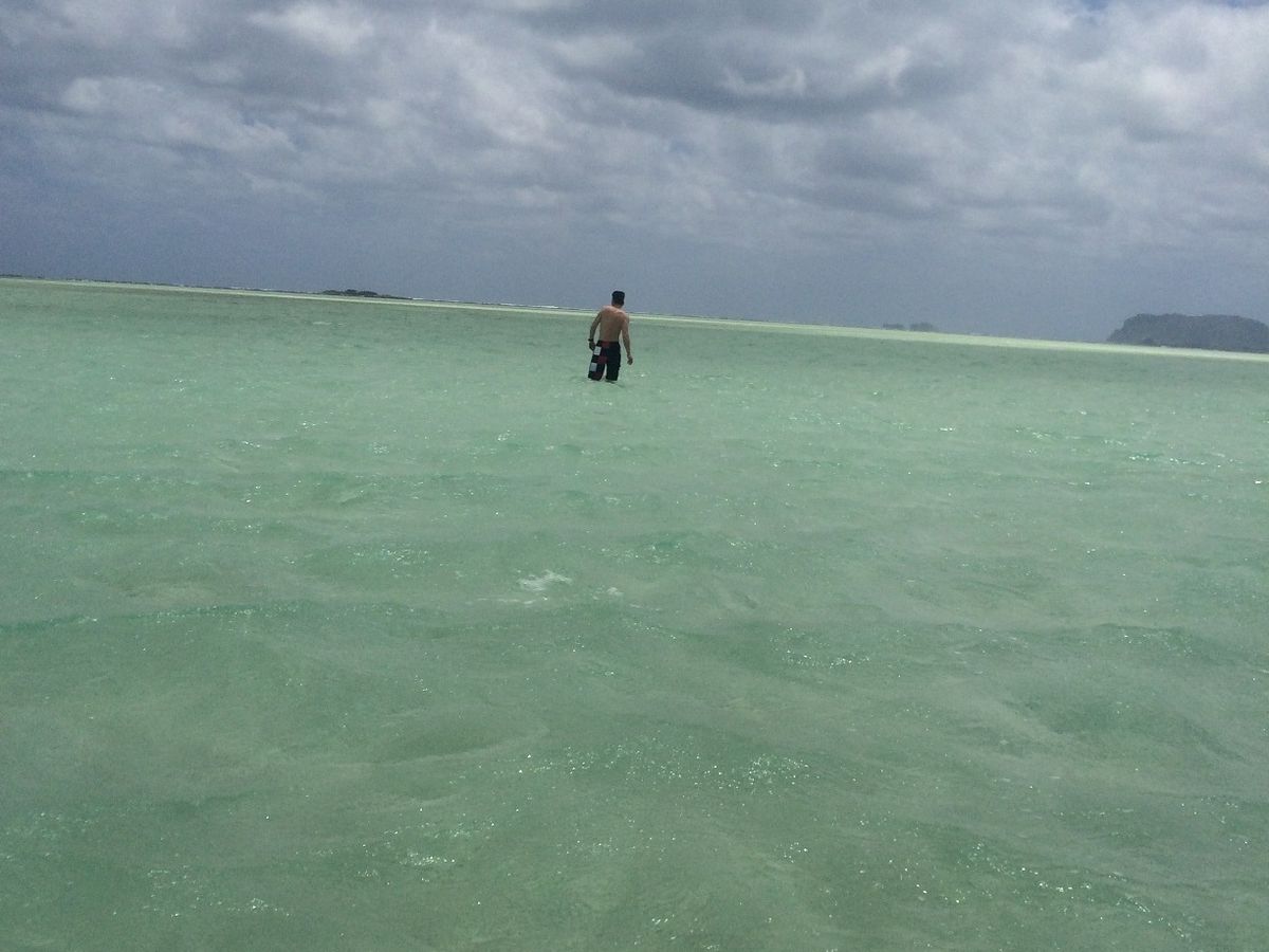 まずはサンドバーへ。確かに遠浅ですが写真にあるような砂浜は見えません。
