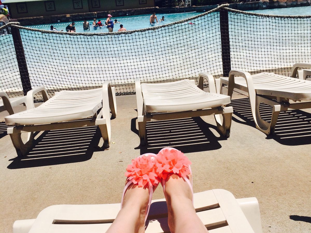 プール日和でした。着いてすぐ、ロッカーを借りて荷物を預けました。前払いで(19ドルくらい)、いつでも開け閉め出来ます。鍵を返却する時5ドルくらい返金がありました。敷地内には、波のプール、