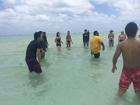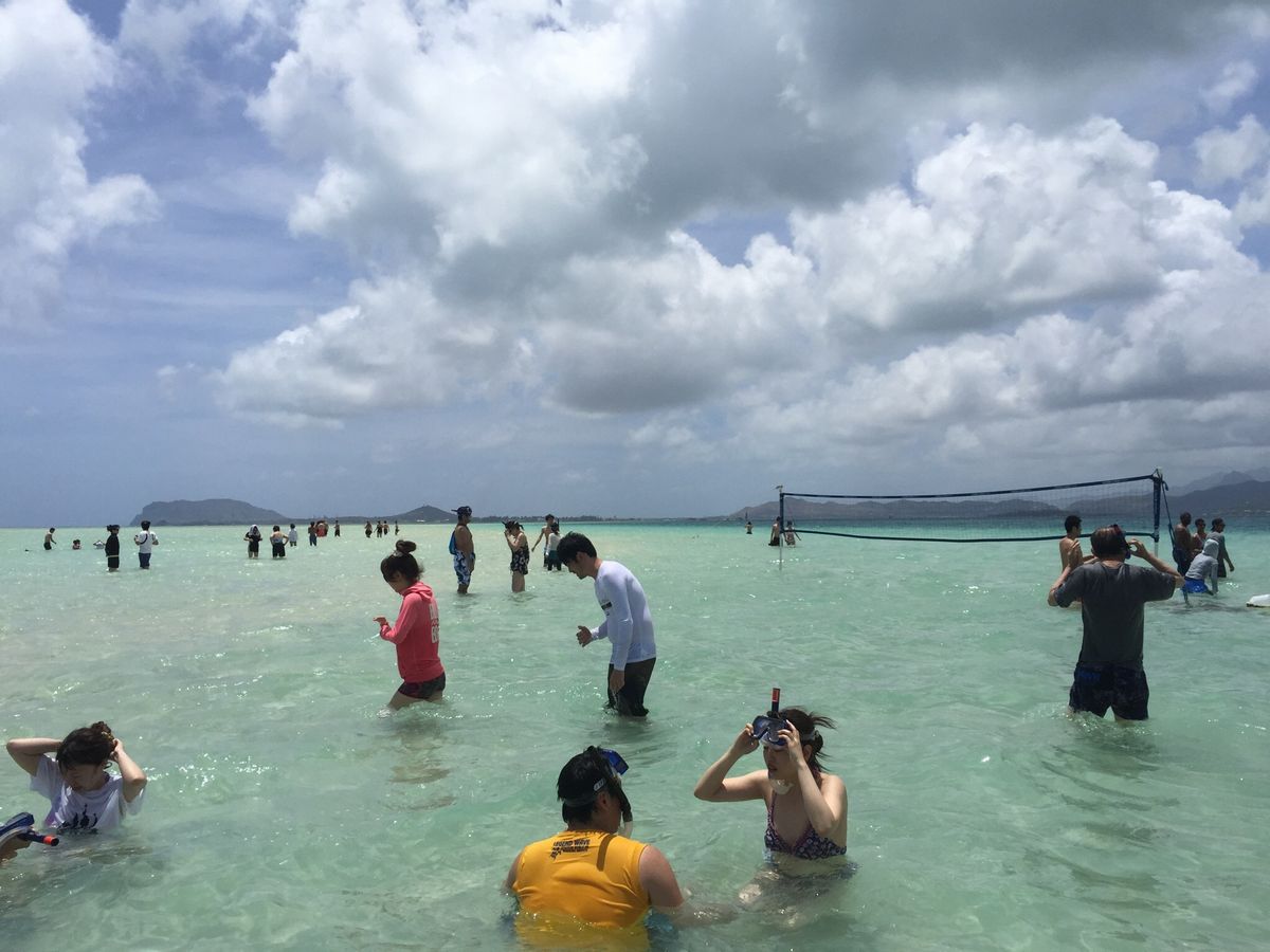 天気は少し雲があり、初めは寒かったですが、ハワイに着いて初の海というのもあり、海はきれいで、真っ白なサンゴには感動しました。