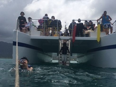 ・あと、ハワイの州法で、ライフジャケットが義務付けられてると前日のイルカツアーで言ってて、そのツアーでは皆しっかりつけてたけど、このツアーでは「自信ある人は無くても大丈夫!」と言ってました。安全管理平気なの?