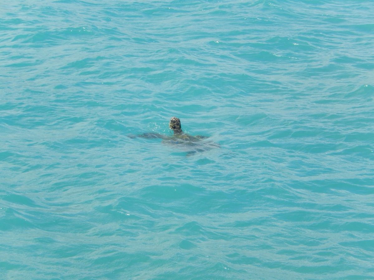途中、ガイドさんの声のほうをみるとカメが海面から顔をだしていた。