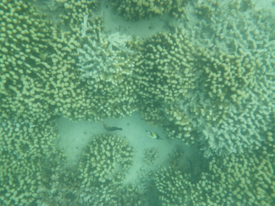 シュノーケルは珊瑚のある場所に移動。