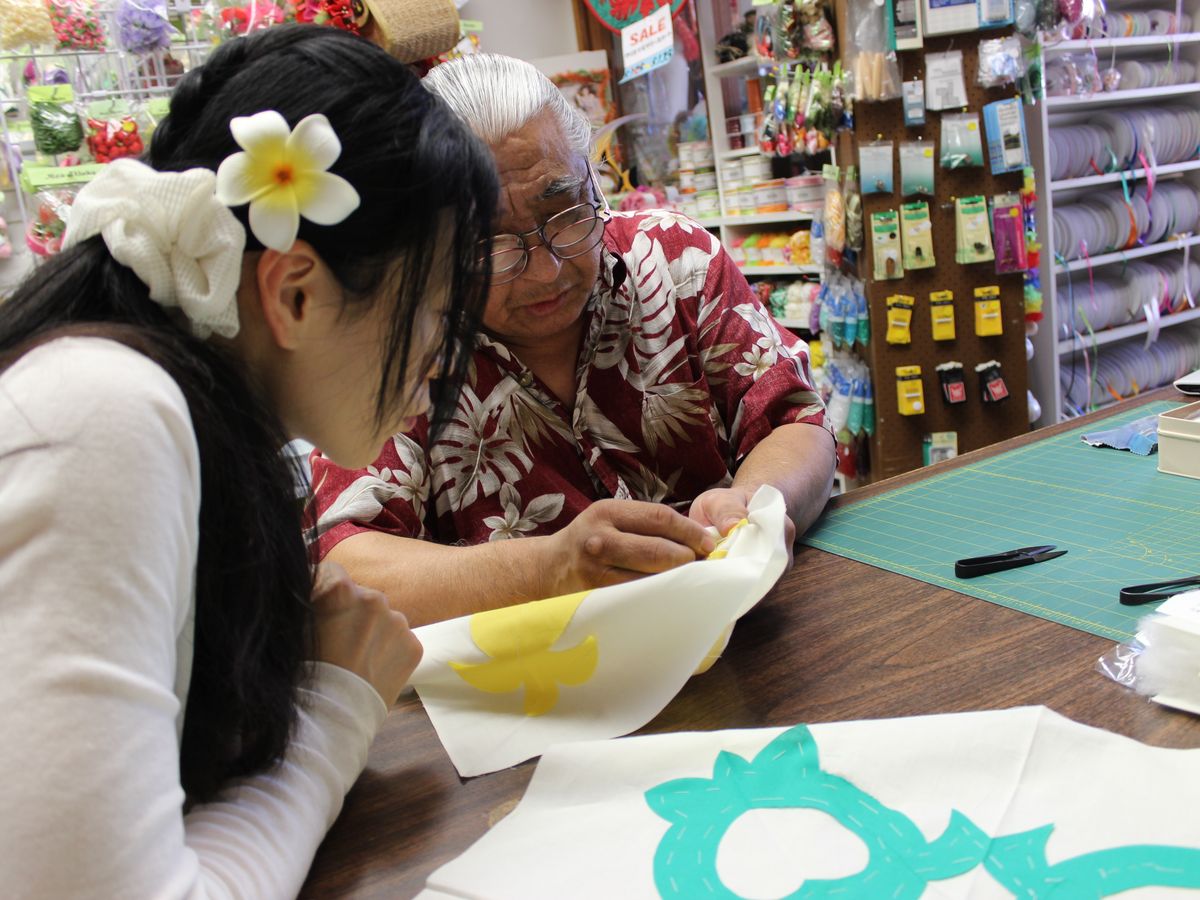 手芸部の経験もあり、ハワイアンキルトについてとても興味があったため、ハワイの伝統手芸を学びたいと参加させて戴きました。お店は中心街に位置し、とても利便性が良く、店内もアットホームな雰囲気であり、緊張せずに参加することができました。私たちが作ったのは緑のホヌ(カメ)と黄色のパイナップルのクッションカバーでした。