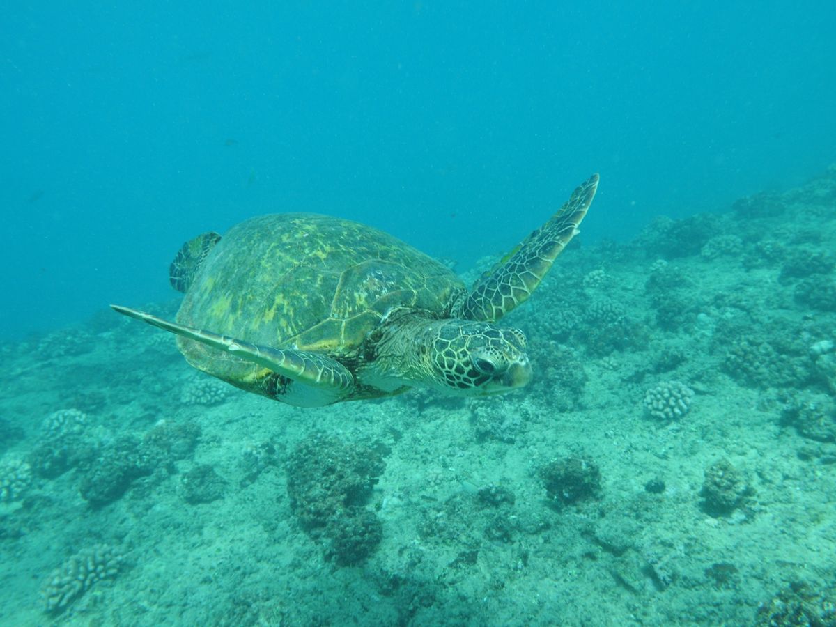 シュノーケルで1mはありそうな巨大なウミガメに遭遇しました‼︎