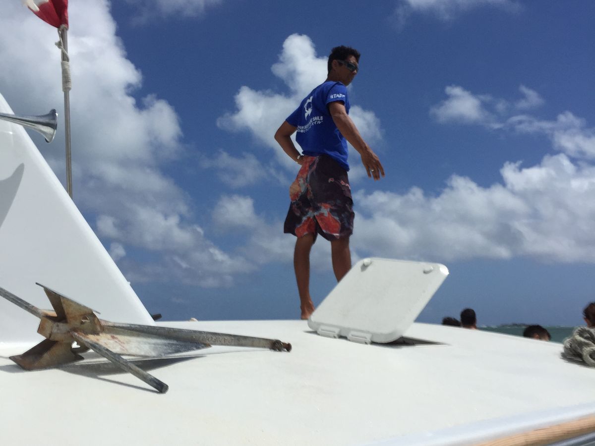 We had a fabulous time! The setting is largely responsible for this, but the people made it extra special. I liked that they had a separate English speaking catamaran. The staff on board were super friendly and very informative. Hamburgers were excellent. Ukelele entertainment was so nice and really added to the atmosphere. Thanks, Jenner! Sandbar was picturesque with the water oh, so warm! We saw LOTS of sea turtles. Snorkeling was great too. View of the coastline was amazing! Caution to the elderly: there is no air conditioning and bathrooms are difficult to access.