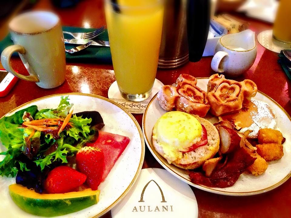 予約していた(アウラニの英語サイトから予約できる)朝食をゆっくり楽しみました!日本のディズニーにはあまり行ったことのない私も、かなり頻度良くキャラクターが会いに来てくれたのにはさすがにテンション上がりました。とくに、グーフィーはテーブル横を通る度にこちら側に目線を向けリアクション。