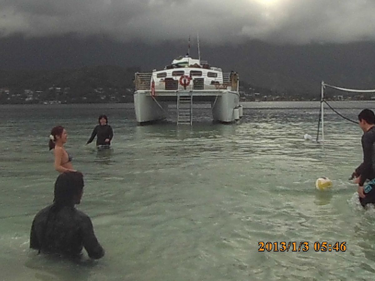 天国の海では景色を堪能するだけでなく、フラダンスのレッスンがあったりして楽しめました。