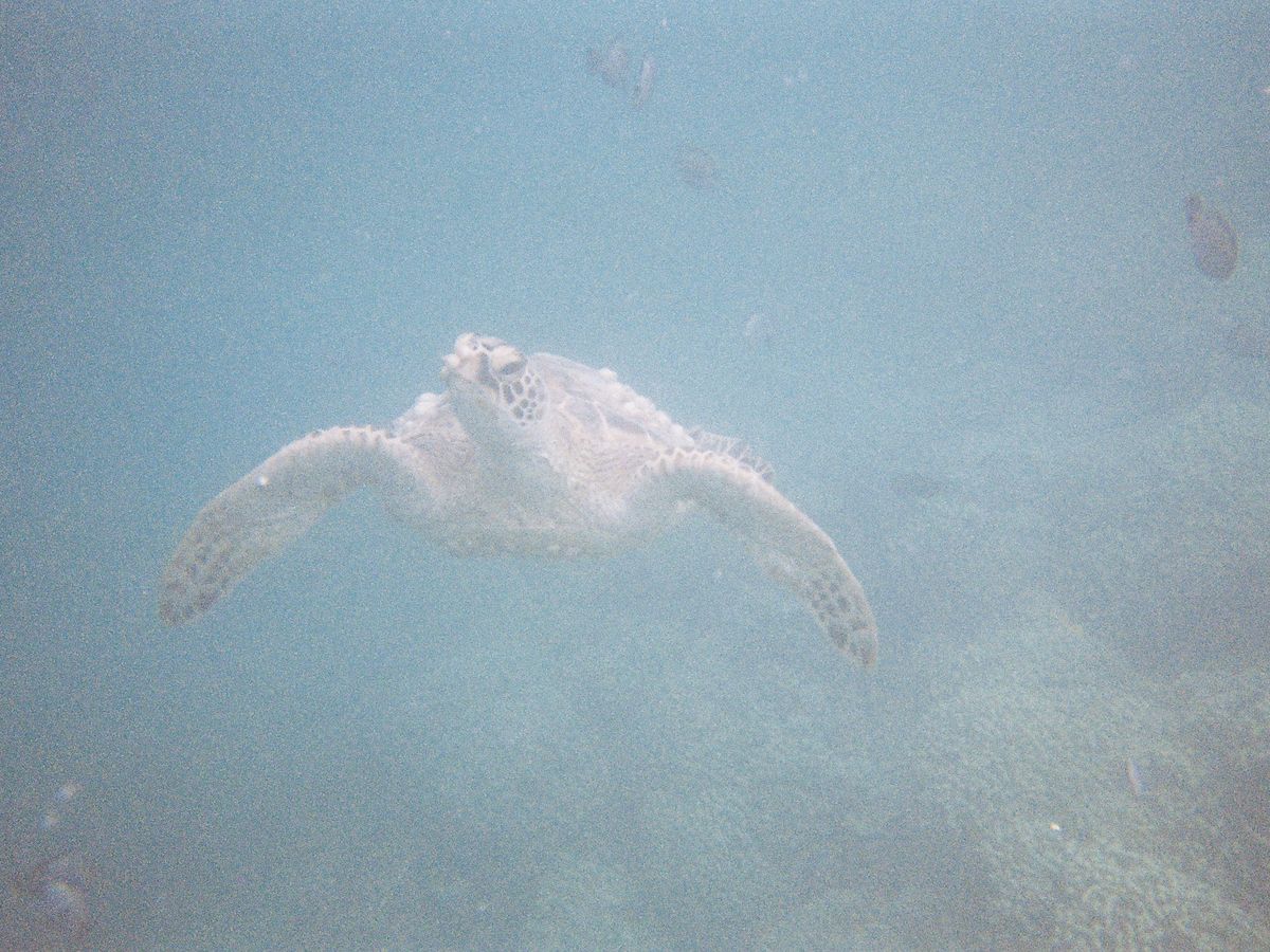 シュノーケリング中にウミガメがやってきて近くで一緒に泳ぐことができ、感動しました(^^)