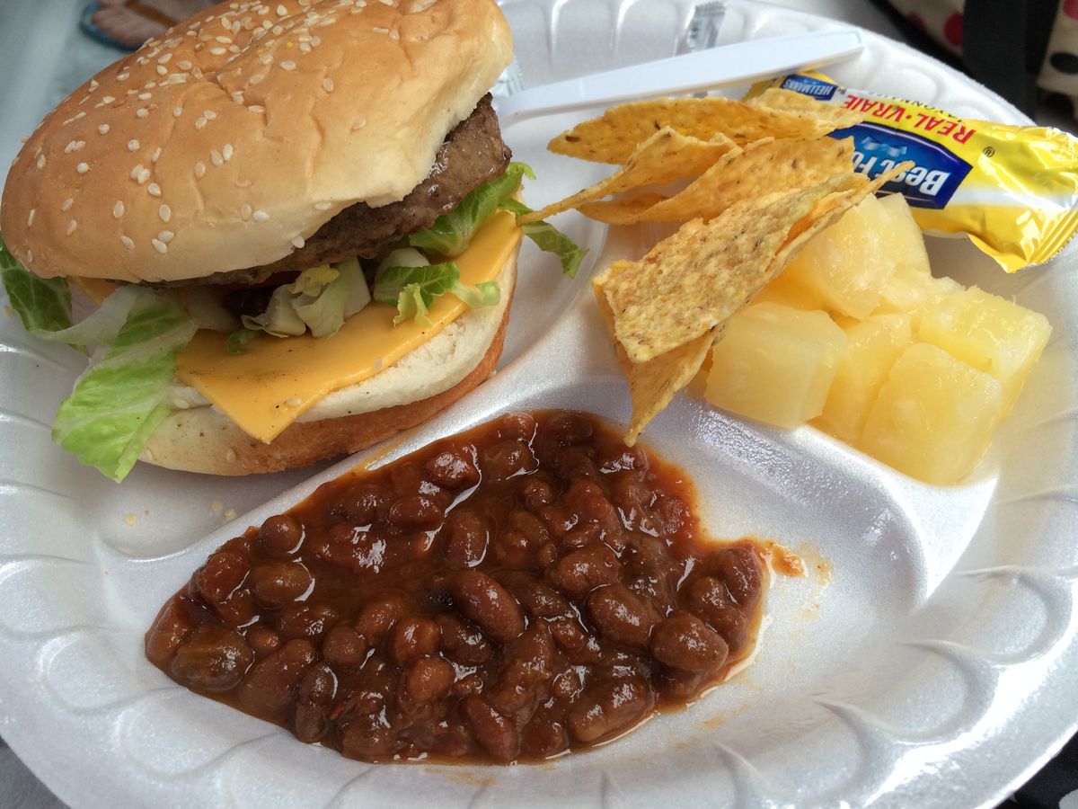 お食事はハンバーガー。普通に美味しかったですが、待ち時間が凄かった。