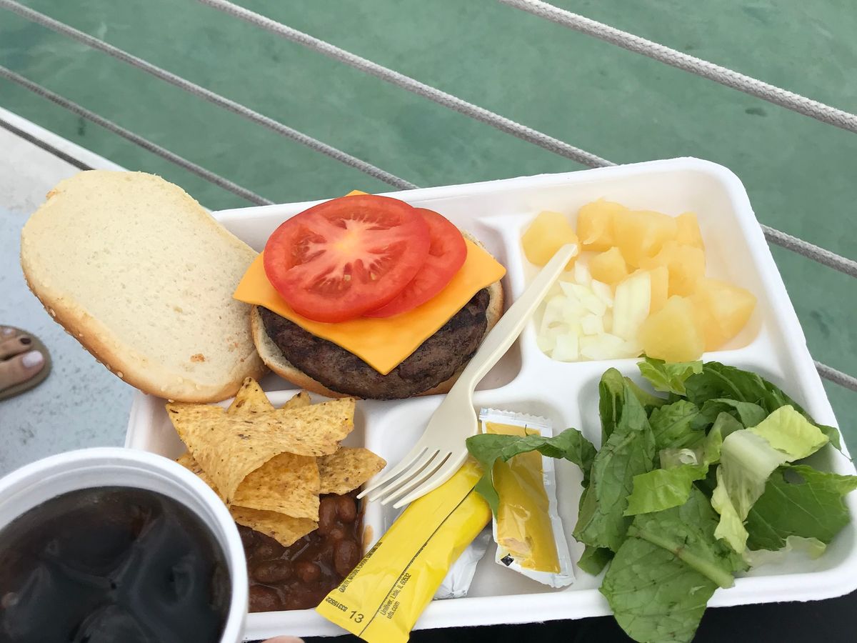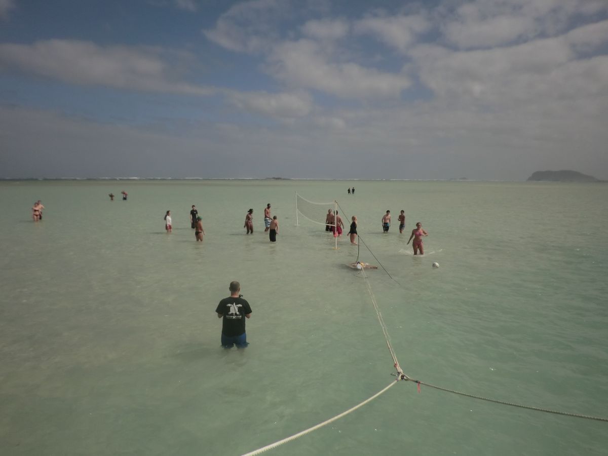 晴れてはいたんですが風があったり時々曇ったり、海に入るにはちょっと抵抗がありました。サンドバーは膝上まで浸かるほどでした。そこでみんなはビーチバレーや写真を撮ったり楽しんでました。その時は肩まで濡れなくてよかったと思います。船に上がったあと寒くて震えます。船上でのBBQランチは美味しかったです。ウミガメも見れたし、スノーケリングでも魚も見れました。ただ、風が強いのでなかなか思ったように泳げませんでした。