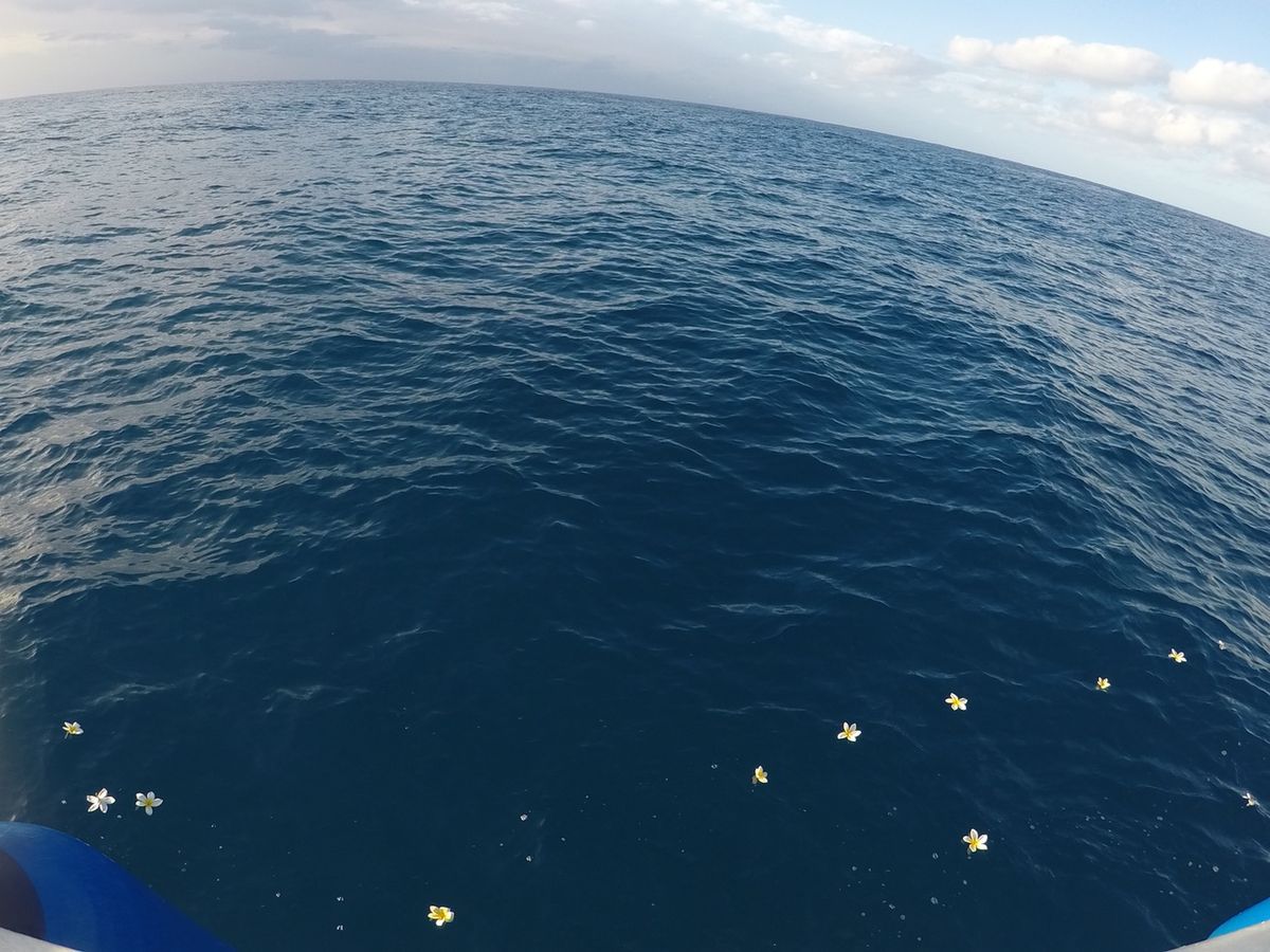 イルカと一緒に泳ぎたい。主人の昔からの願いでしたので、このツアーに参加しました。朝、5:30に集合だったので、そこから寒い一日がスタートしました。ハワイとはいえ、12月は寒かった。港について、出港。ウェットスーツを借りて、水の中に入りました。波も高く、海も濁っていて、たまに、イルカの背びれが見え隠れしていましたが、はっきりとは見えず。その間に、何度も水を飲んでしまい、ゲホゲホ(-_-;) 一度船に上がり、イルカのいる場所を探し移動。そして、二度目の入水の時には、ガタガタと寒すぎて震えがきて、どうしようもなく、私は断念。主人は中に入りました。イルカ達がいるところに遭遇し、若干一緒に泳げたそうで、主人はよかったといっていましたが、私はその後も寒さとの葛藤で、早く帰りたい。そんな思いがずっとありまして、、、