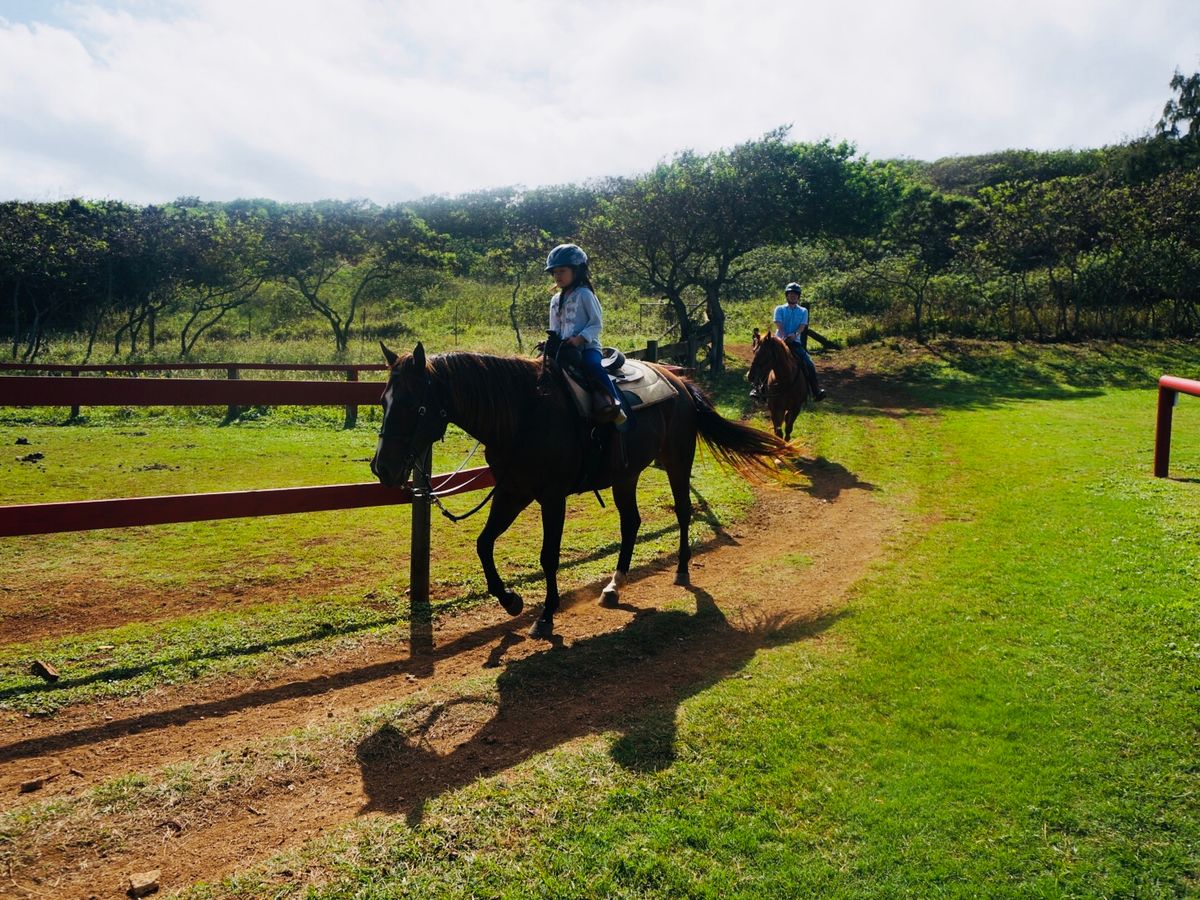 今回、30分の子供向け体験コースを5歳の息子と私で、7歳、9歳の娘達と主人が1時間の体験乗馬に参加させて頂きました。全員声をそろえて気持ち良かった~楽しかった〜!!でした。7歳の次女が、日本だったら私の歳で1人で1時間も乗してくれないよねぇとしみじみ感動して噛み締めていました。本当に賢い馬達で、娘たちの手綱さばきもいっちょ前さんに見えました。主人が言うには、上り下りもある牧草地や山道をじっくり1時間かけて乗馬するので初心者や子供達に大、大、大満足な1時間だと思うと言っていました。