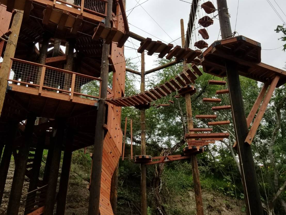アドベンチャータワーは童心に帰って楽しめました。ただ、それだけでは物足りないと感じるかもしれません。ジップラインをしているグループの声も聞こえてきて「自分達もやりたい」と思いました。バギーも…。体験コースでしたので、贅沢は言えませんがf(^^; もちろん命綱はありますが、とても足場が不安定なところを進んで行くアスレチックなため、高所恐怖症な方、足腰に自信のない方はちょっと厳しいかもしれません。私は次の日、じゃっかん筋肉痛になりました。また、命綱を自分で引っ掻けて進んで行くのですが、少し高めの位置に設置されているため、子供など身長の低い人もしんどいかも…。最後には低めのバンジー的なものをしました。ターザン気分を味わえましたが、高所恐怖症ではない私でも少し怖かったです。いつかバンジーに挑戦したいと思っている人なら、肩慣らしにいいかもです。