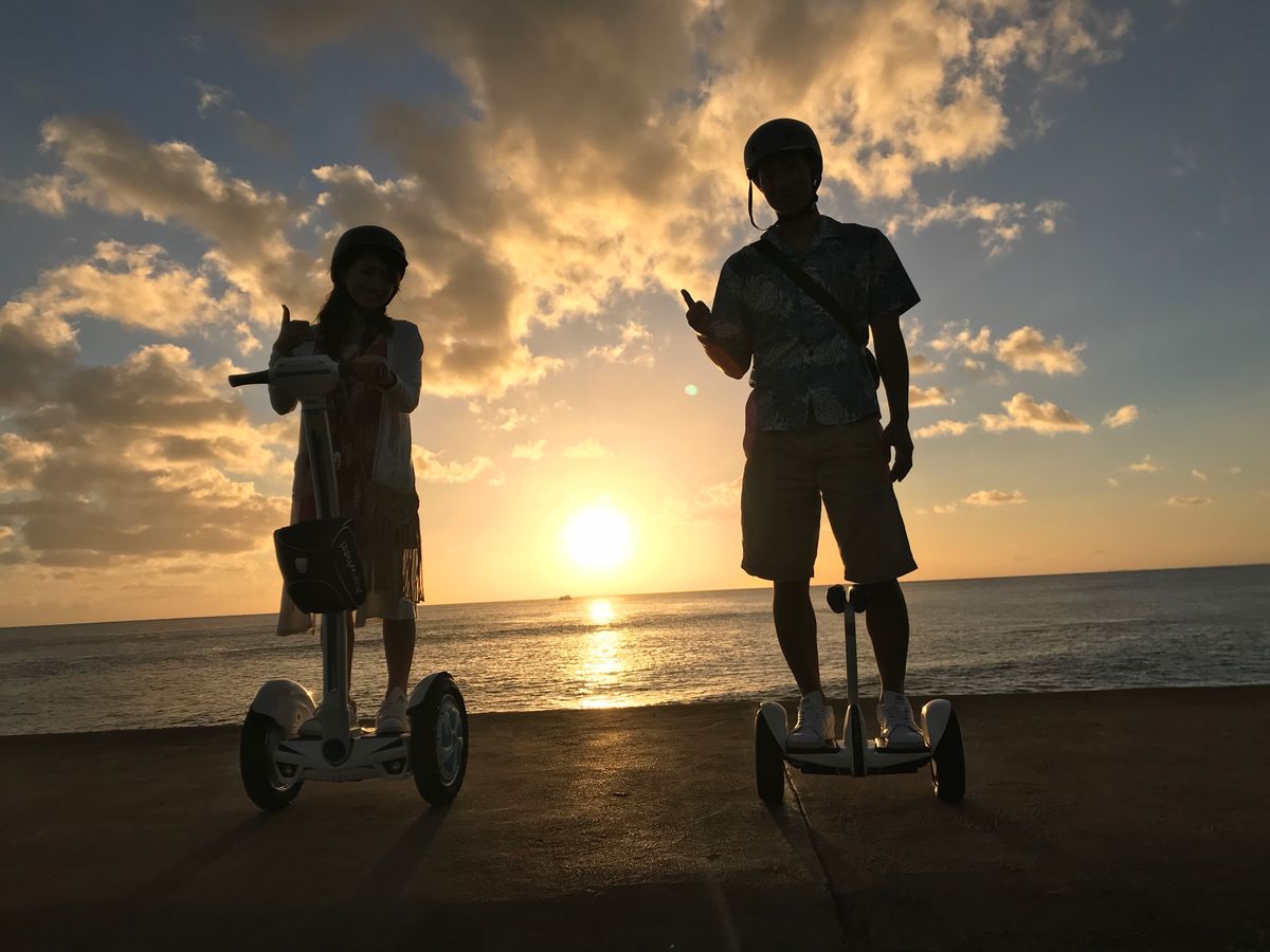 2017/11/14、ホノルル到着の午後にできるツアーを探していて、エアーウィールのツアーを見つけました。体験談から母(66)も出来るかもしれない、代表の高橋さんの評判を頼りに参加しました。ホテル迎えの車中から色々なお話をしてくれました。母と2人しかいませんでしたがお二人のインストラクターがついてくれました。意外にも母の方が上手く乗れてしまい、緊張気味の私をよそに楽しんでいました。予定にはなかったビーチ(マジックアイランド)まで連れて行って頂き、ダイヤモンドヘッドが一望できました。インストラクターの方も丁寧に教えて下さり終始、町の色々な説明もしてくれました。本当にお勧めのツアーです。代表の高橋さん、インストラクターのお弟子さん⁈ありがとうございました。剣道の段試験も、頑張って下さい。応援してます‼︎
