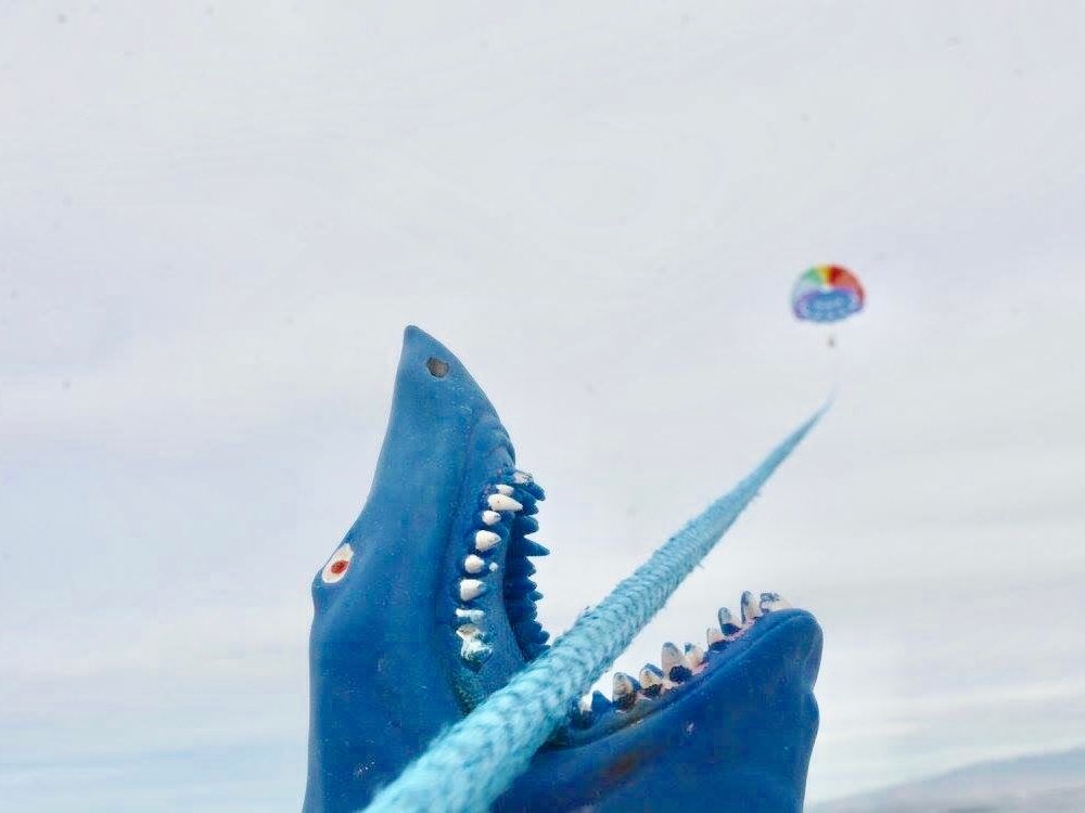 船で出る前から雨。止んでくれーと願っていたら無事止んで、飛ぶ頃には晴れて虹!最高のロケーションでした。