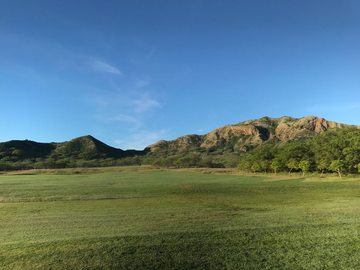 降りて来た後、緑の公園をバックにダイアモンドヘッドが本当に素敵に見えました。