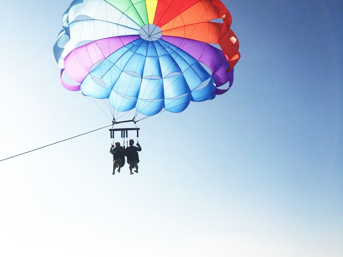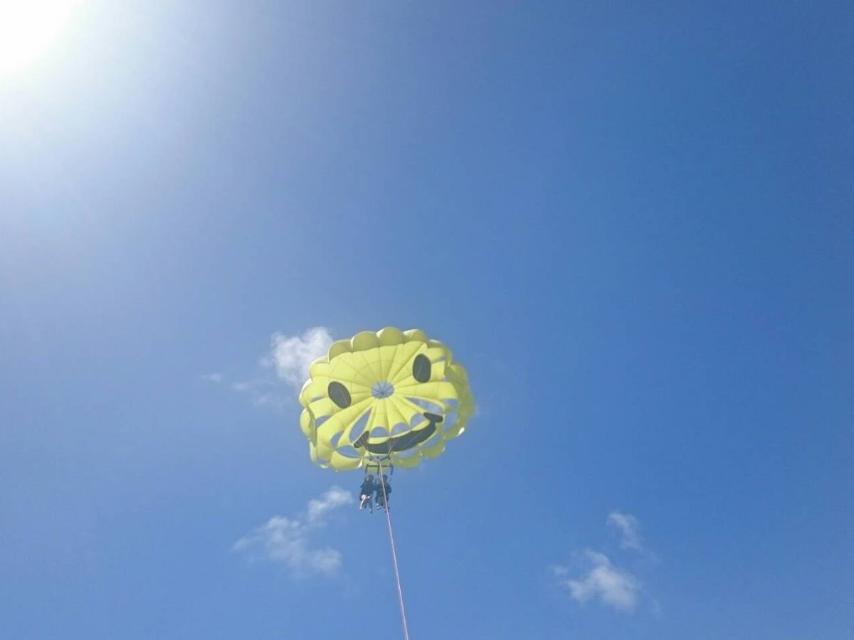 パラセイリング150mを予約しました。初挑戦でドキドキしましたが空に上がってしまうと景色が最高で綺麗な海が見えたので参加してよかったです。お天気が少し悪かったのがショックでしたが…。後、乗り物酔いをする方は、事前に酔い止めを飲むことをお勧めします。気分が悪くなる方もいらっしゃいましたので。