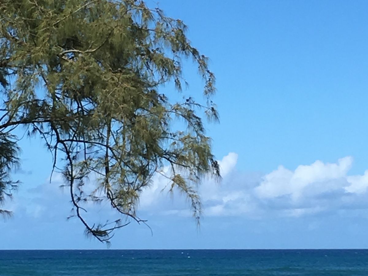 貿易風の流れが数日前から変わった影響で流れ着いたカツオノエボシ(電気クラゲ)に息子が刺されて、大変でしたが、ビーチは本当に綺麗で、素敵なところです。