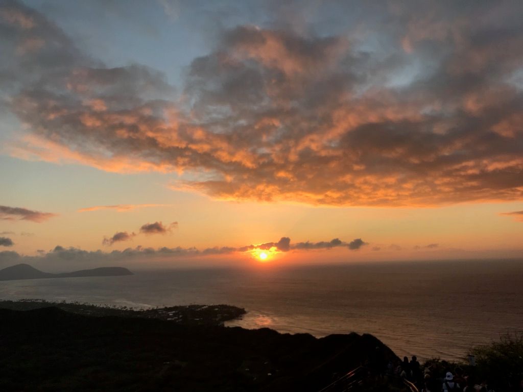 ハイキング不慣れな私でも、何とか30分間のハイキングコースを登り切ることができました。途中雨が降ってきたので心配でしたが、綺麗な朝日を見ることができました。