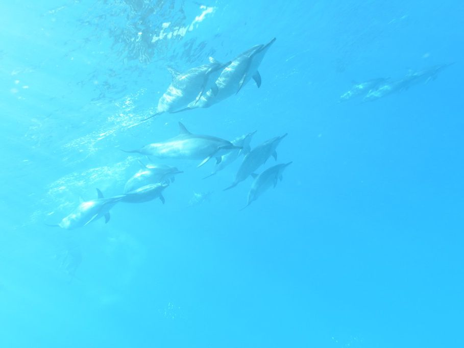 船からイルカを探し、イルカを見つけては海の中へ。泳ぐのが遅くて水面でしかみれなかったときもありましたが、係りの方が見れてない人優先で海に入れてくれたので無事に見ることができました。
