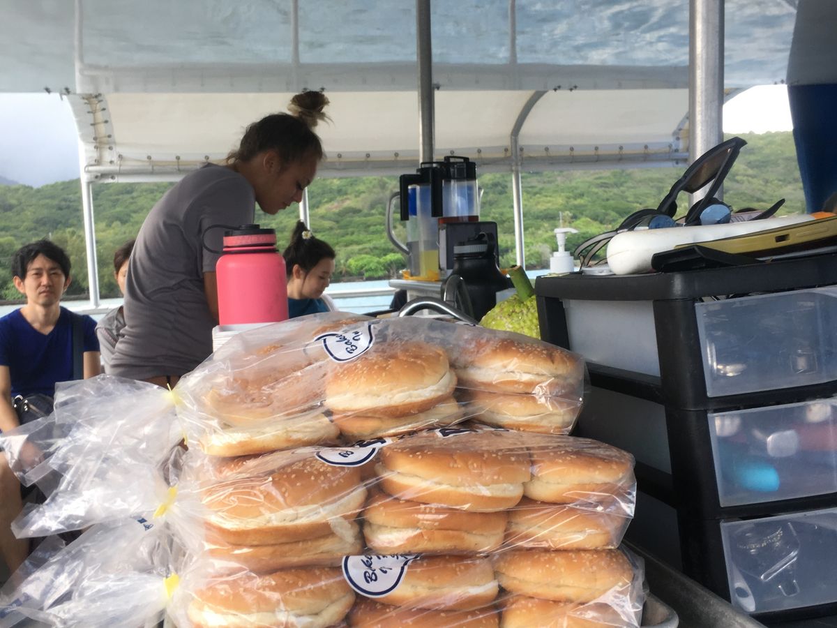 このツアー参加は3度目です。他社のツアーにも参加したことがありますが、オールハワイクルーズの天使の海が一番楽しいです。これぞアメリカンハンバーガーですね!楽しいスタッフの方のおかげで、お迎えのバス内からテンション上がりますし、なんてったってランチのハンバーガーがピカ一美味い!