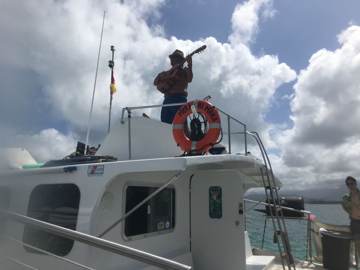 The pick up was right on time and was greeted by a very knowledable and talented host who gave us information about the island and the adventure ahead of us. He also sang us songs and got to know each of us. The first part of the adventure was to board 2 katamarans and sail to the sandbar. The crew was also very knowledgeable and made sure we all knew what to do. They spoke many languages so everyone was cut in. The sandbar is amazing where you wade in waste deep water and enjoy the company of other travelers or play water volleyball. After that we boarded the boat and went to see the green sea turtles which we all over the area while the crew prepared lunch. The lunch was a grilled burger which was vert flavorful and juicy. All the fixings were available along with baked beans, potato salad etc. soft drinks, ice tea, hot tea and coffee were free and beer and wine was available for purchase. After lunch we sailed to the reef where we readied for snorkeling. All equipment was available from masks, snorkels, fins and life jackets. The crew kept an eagle eye on all of us to ensure our safety. The snorkeling was wonderful with a nice display of fish and some turtles who didn’t mind us being there. My wife came face to face with a turtle and went above water for air the went back under with the turtle. This was one of the best adventures we’ve had and can be enjoyed by all ages. We had young people and I am 66 years so all ages can enjoy. The crew saw to our every need from helping us to put equipment on to helping the first times who seemed to enjoy it the most. After that we headed back to shore, the bus and our ride home. I can’t say anything but good about this adventure and will do it again next year when we return. The driver, the host and the crew made this a very perfect day for us❤️❤️❤️
