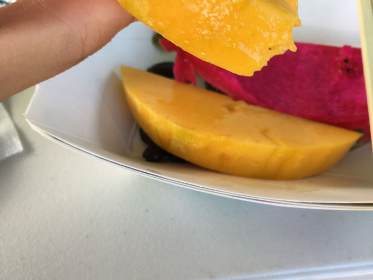 最初は少しずつ果物の名前と味とを確認してましたが、進むにつれどんどんマキさんが果物をくださるので、どんどん食べていき、名前がわからない、でも、美味しい果物をたくさん食べました!そこでしか、食べられない果物も多く、本当に幸せな時間でした!!そして、畳み掛けるように確保していただいてたマンゴーやハニークリームパイナップルをいただきました!本当に予想していたよりも甘くて、とにかく美味しいを連呼しました(笑)