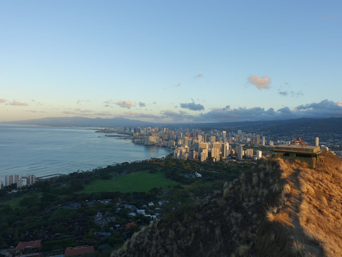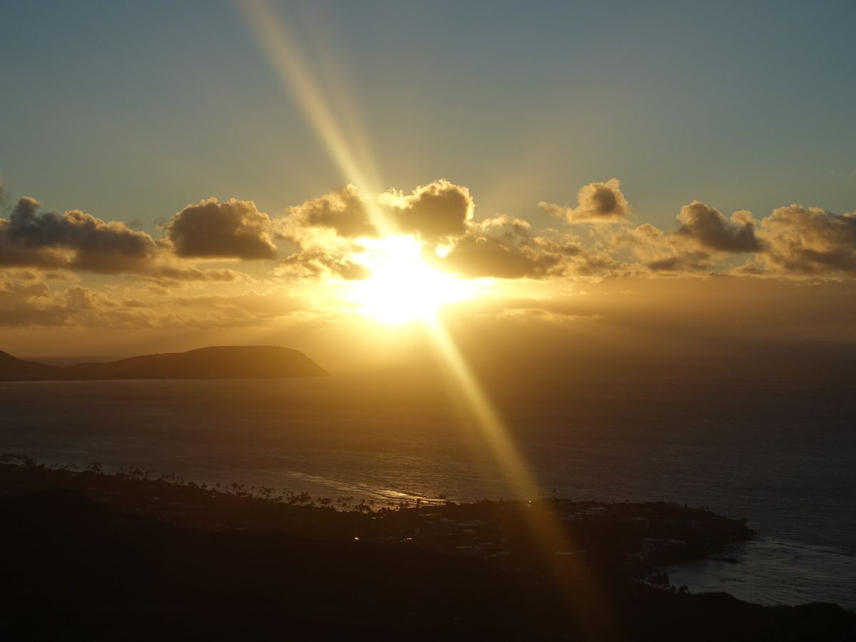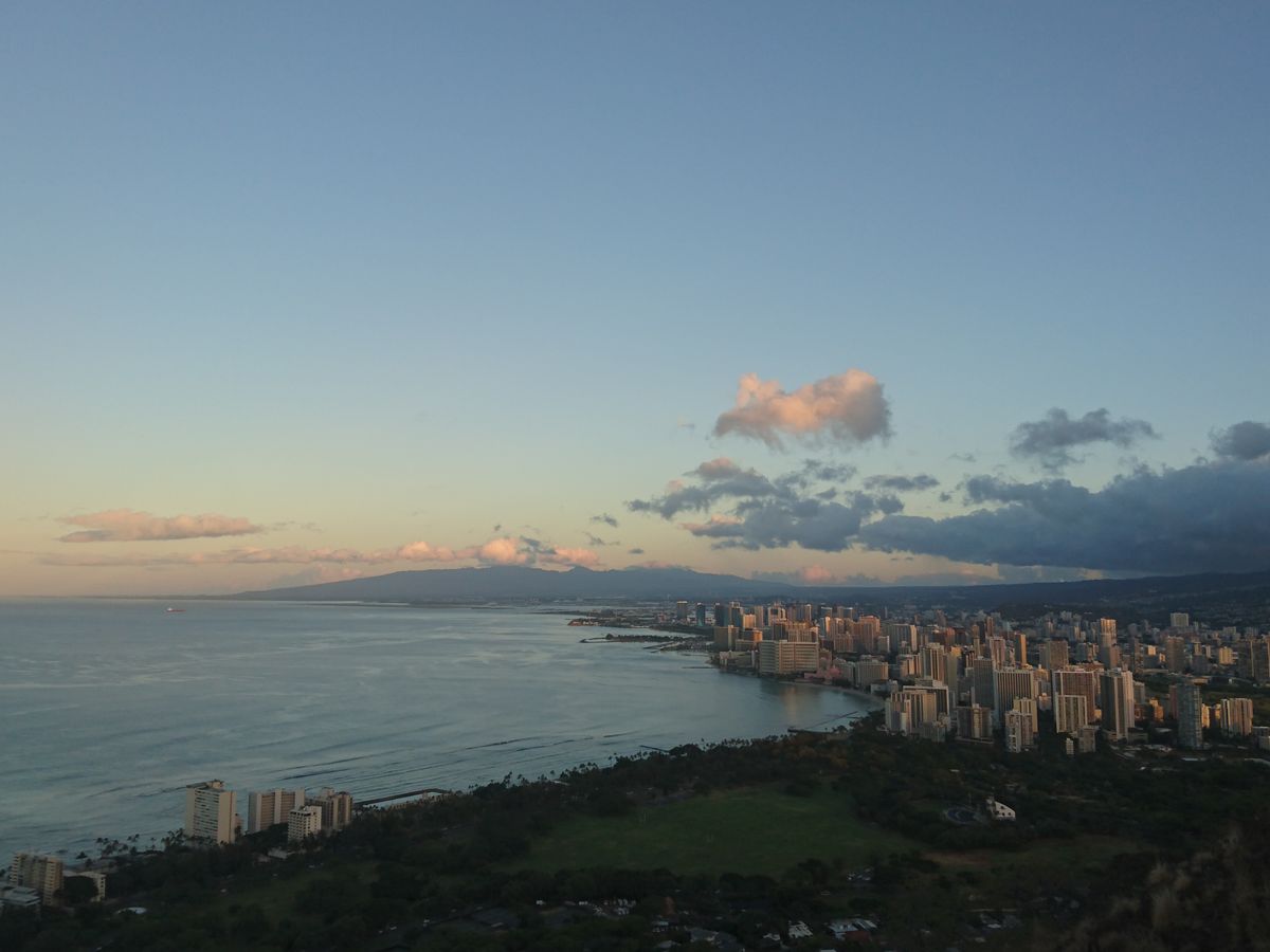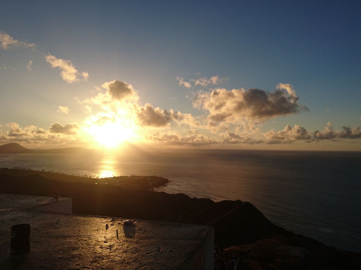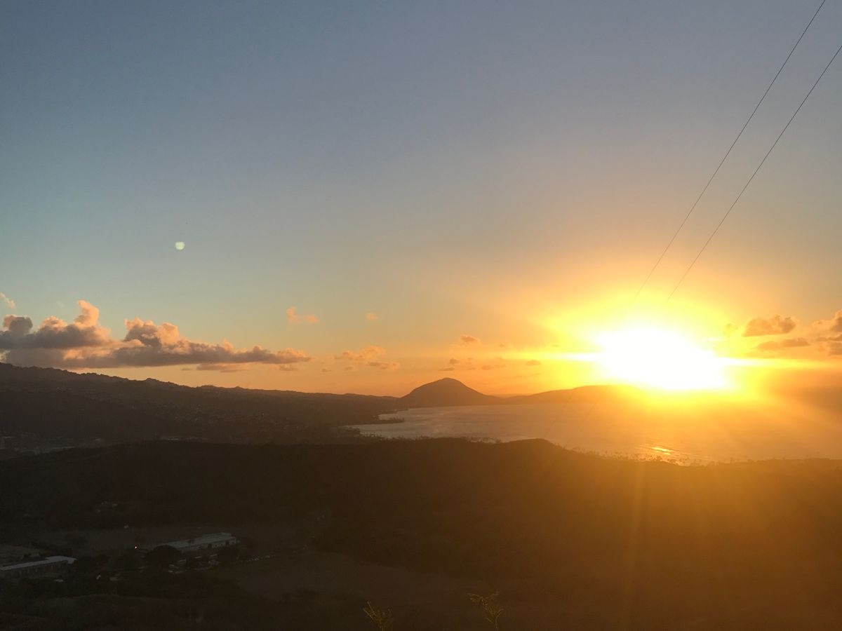 ダイアモンドヘッドの日の出ツアーでしたが、公園の入園時間が決まっているため、日の出には間に合わず朝焼けでした。