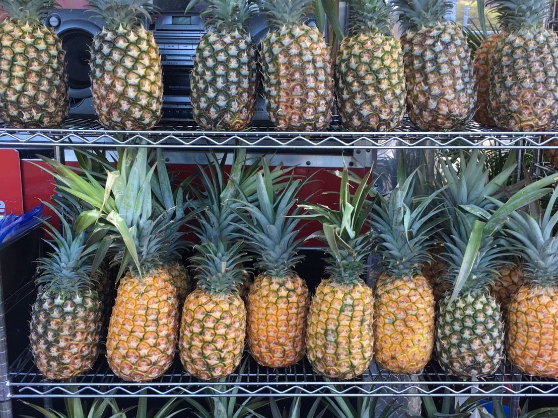 ハワイならでわの美味しいフルーツが山盛りになっています。