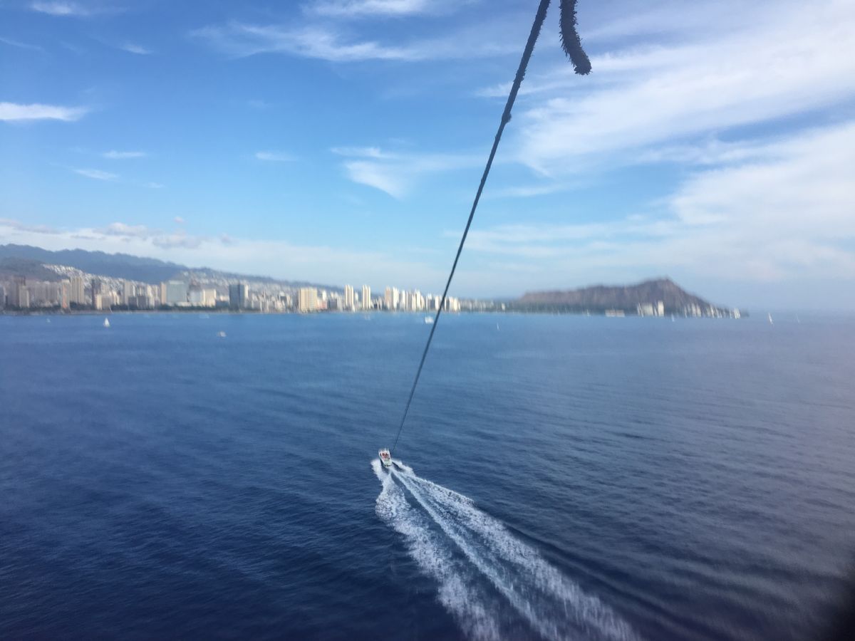 2人とも初めてのハワイ、パラセイリングでしたし、ガイドも英語onlyで不安でしたが、所々片言でお茶目なガイドさんで、言葉が通じなくても楽しめました!空からの景色はもうサイコーーー!!!