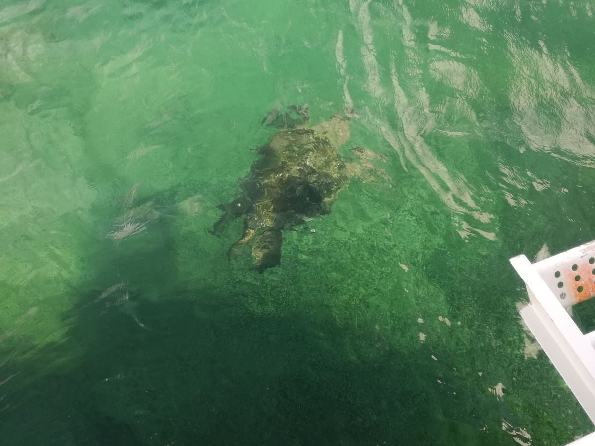 ウミガメ達を餌付けはしていないのですが自然にツアーの時に出勤(!?)てくれるようになりました。
