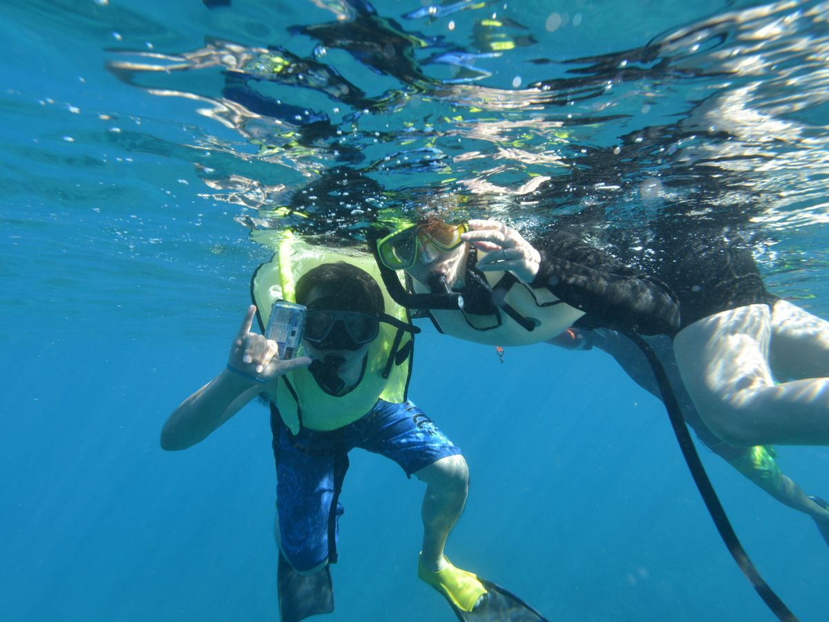 シュノーケルで魚と戯れ、ウミガメさがしに夢中になり、お昼は美味しいハンバーガー‼︎