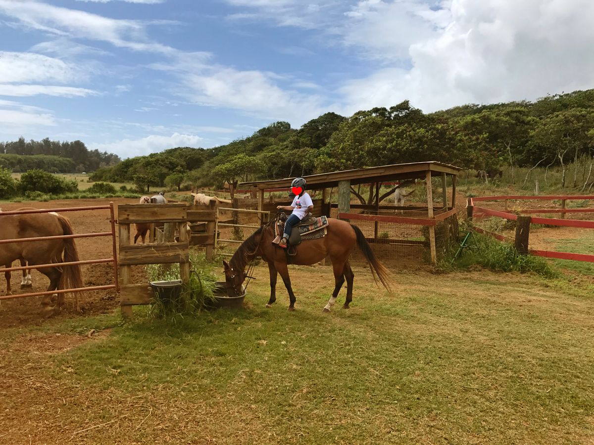 今回は8歳の息子を連れて家族で参加しましたが、ノースショアの大自然の中を馬と共に散策できるのは感動です。