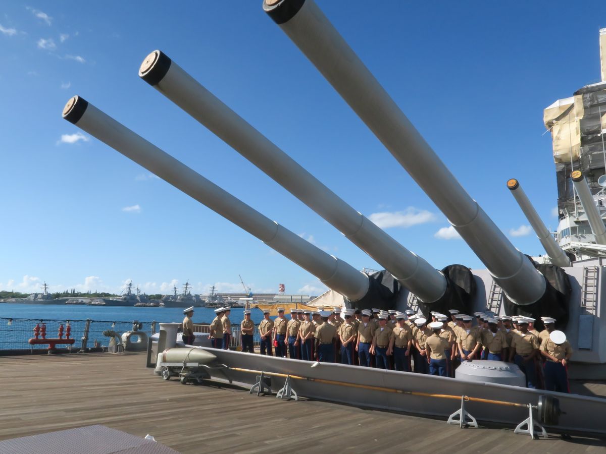 80代の両親を連れての夫婦旅行でした。両親は戦中世代ですし、わたしはパールハーバーを実地で見たくて参加。アメリカがどのように戦争を語っているかが、わかってよかったです。ガイドさんの「アメリカは戦争から歴史を語る」という言葉通り、船中に沈んだアリゾナがそのままに墓地となっている記念館は、観光客があふれながら、聖地といっていい静謐感がありました。水中にうっすらと透ける戦艦の影は凄みもありました。その後は、バスで戦艦ミズーリに向かい、甲板から船の内部まで見て回ります。日本が降伏文書にサインした場所や、特攻隊がぶつかった傷あとなども解説されます。このとき亡くなった特攻の若者の遺体は、翌日、艦長の判断で旭日旗にくるまれ敬意をもって埋葬されたということも知りました。ハワイを訪れたアメリカ人はほとんどがここを訪ねるそうです。本物の戦艦を目の当たりにできるだけでも、インパクトがあります。日系人が活躍しているハワイでもありますし、ぜひ参加してみてはいかがでしょうか。