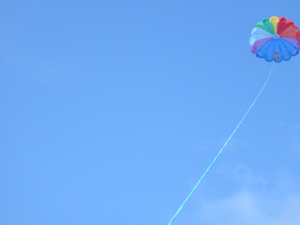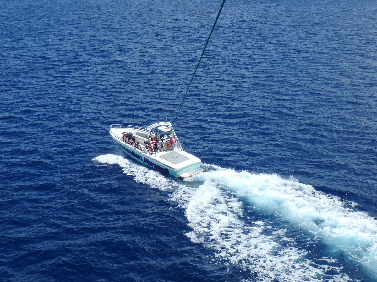 パラセイリングは空を舞っている時も見ている時も楽しく 同船の方との一体感があります