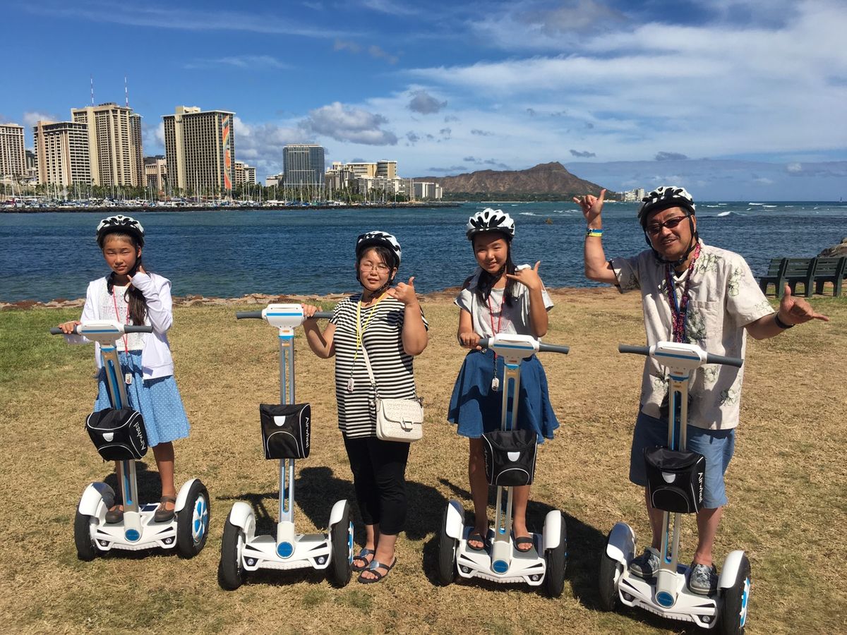 日本人のインストラクターの方が親切に教えて頂き、操作は思った以上に簡単で、すぐに慣れました。10〜15分程度練習して、市街地へ。横断歩道を渡る時は緊張しましたが、難なくクリア。風を感じながら大きな公園、海岸沿いを走行し、ポイントポイントで写真撮影も手伝って頂きました。気持ち良かったです。車で送って頂く帰りに、有名なウォールアートにも立ち寄ってくださり、自分達だけでは多分行かなかっただろう景色を見ることが出来て子供達も喜んでました。ロコモコやステーキの美味しいお店も紹介して頂いて、ありがとうございました。大変、お世話になりました!