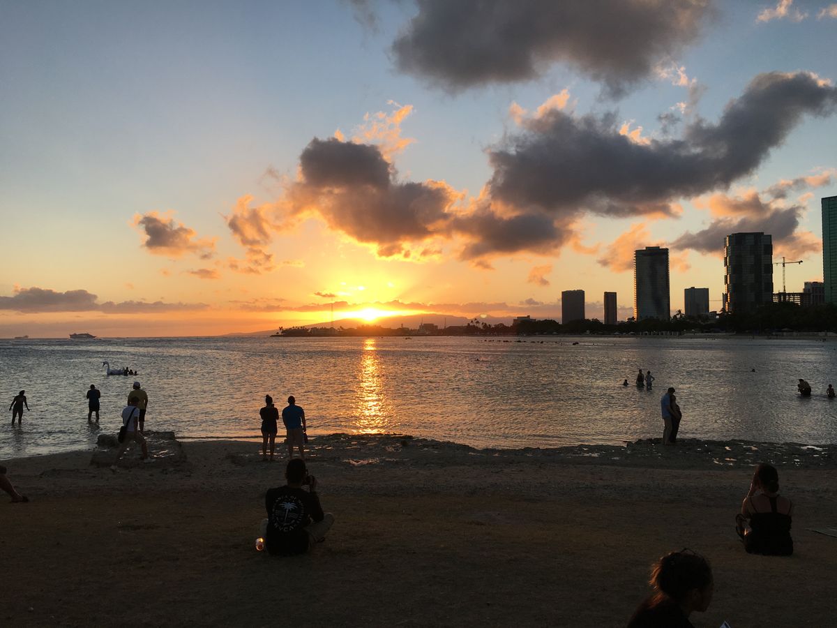 その後アラモアナビーチ沿いを綺麗な海を眺めながら、ゆっくりと時が過ぎていくのを感じながら、いよいよサンセットタイム!誰もがすべてを忘れてしまうほどの美しい夕陽でした。
