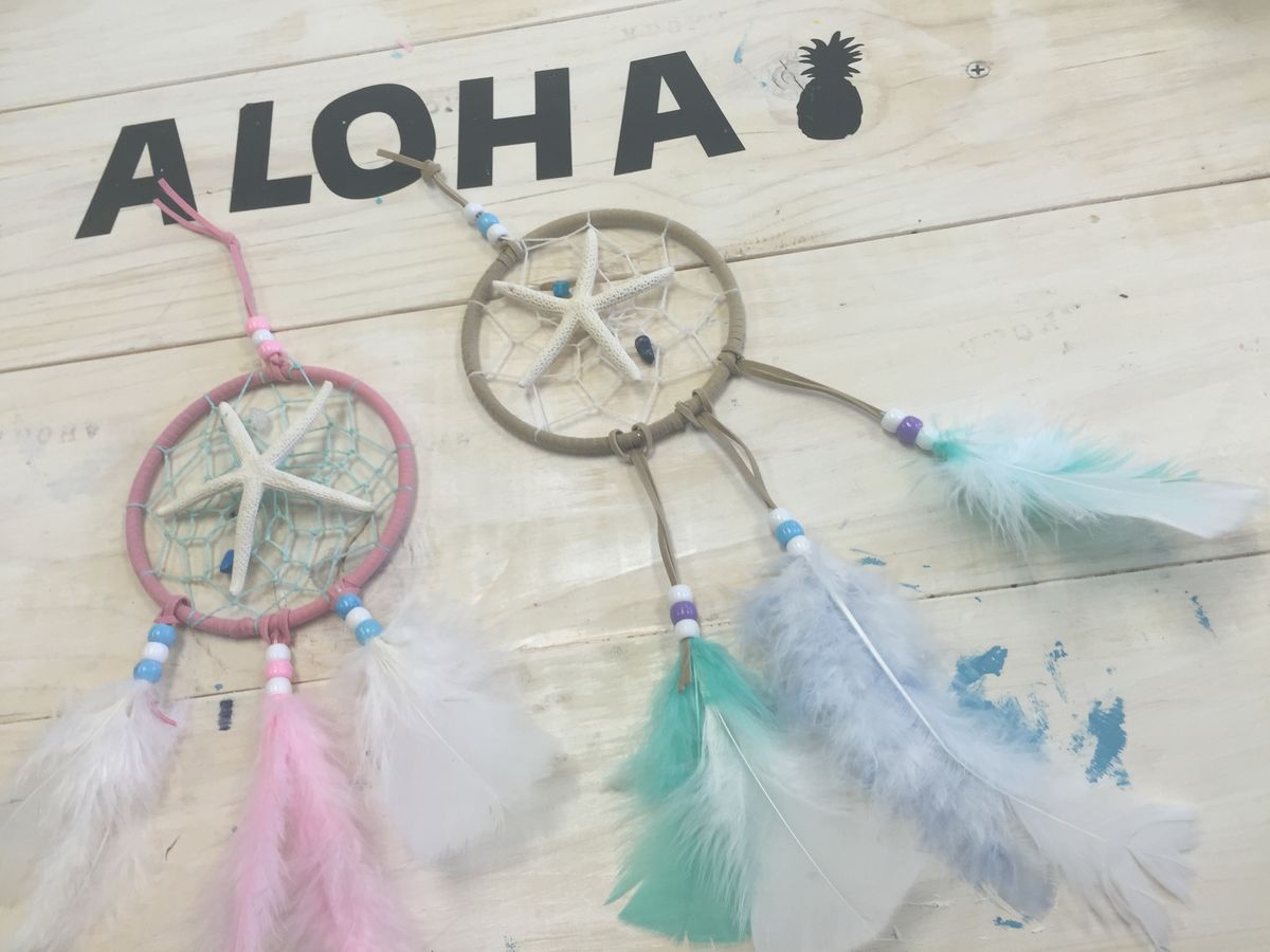 初めてのハワイ旅行でドリームキャッチャー作りに参加しました。自分でどれだけ作れるのかな〜ってワクワクしながら行くと、編んだり巻いたり、ほとんど自分でさせてもらえました。真剣に集中して作っていると、途中無言でした(笑)先生はとても優しくていねいに教えてくれるし、上手ですよ〜って褒めてくれます。ひもの色やデコレーションをたくさんの種類の中から選ぶことができます。大人でも楽しめる活動でした。ショッピングで買ったものよりも嬉しい自分へのお土産になりました。思った以上に嬉しくて楽しいですよ!1時間ぐらいでできるので、少し時間が空いたらぜひ参加してほしいです。観光やビーチだけでなく、形に残る思い出づくりになるのでおすすめです!