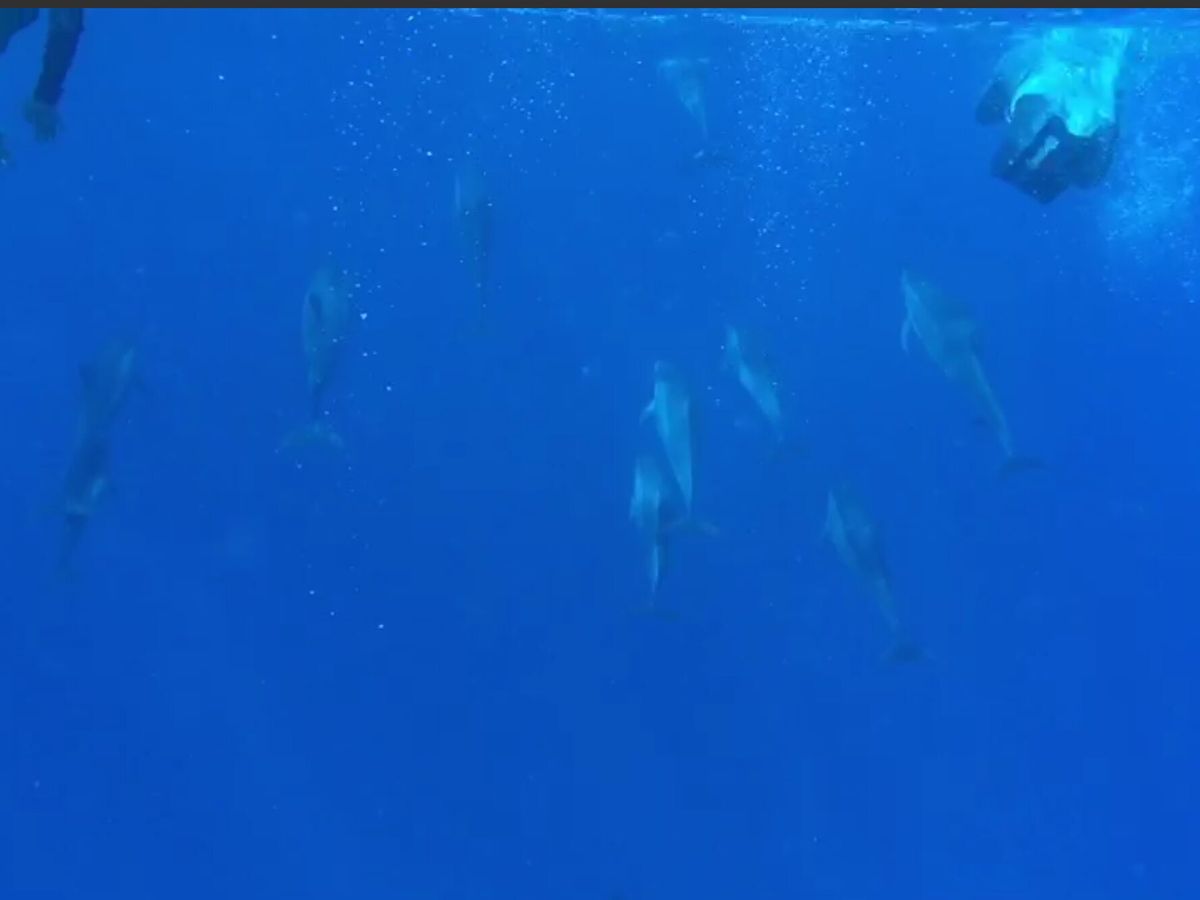 いざポイントについて潜ると、その瞬間水面のすぐ下に10頭以上の群れ!感動です。