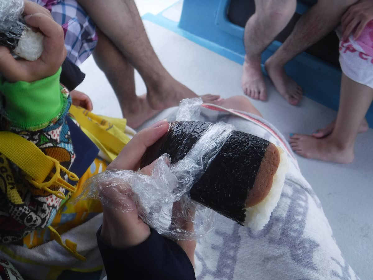 大学との違いはSUPなどのアクティビティがないことと、ご飯の中身(大学はお弁当?こちらはポテトチップとスパムむすび。すごく美味しかった)。