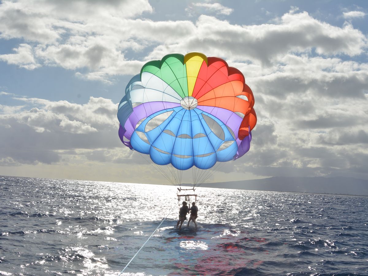 船上ではノリの良い音楽が掛かり、次々と参加者が空に飛んでいきます。順番が回ってくるまでも、参加者が飛んでる様子を観るだけで楽しかったです。実際に飛んでみても、勢い良く空を飛ぶ瞬間は今でも覚えてます。また安定して空を飛行している時は、遠くオアフ島のマンション群を観ながら、ハワイに来たんだと実感出来て、奥さんと二人で「来て良かったね」と本当に満足できました。海に何度か着水させて、上下させた後、船に戻ります。必ず水着着用で参加しましょう。