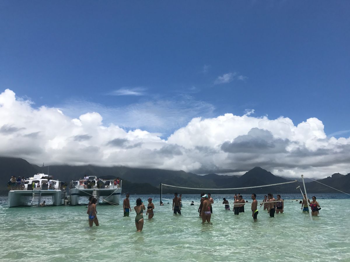 サンドバーで、シュノーケリングの練習や、バレーボールなどをして遊べます。サンドバーは遠浅で魚はほとんどいないので、途中、サンゴ礁のある海の深い所へ行って、シュノーケリングします。移動中、ハンバーガーが振舞われます。美味しかったです。バーベキューのイメージとはちょっと違うかも?シュノーケリングでウミガメと泳げたので満足です。