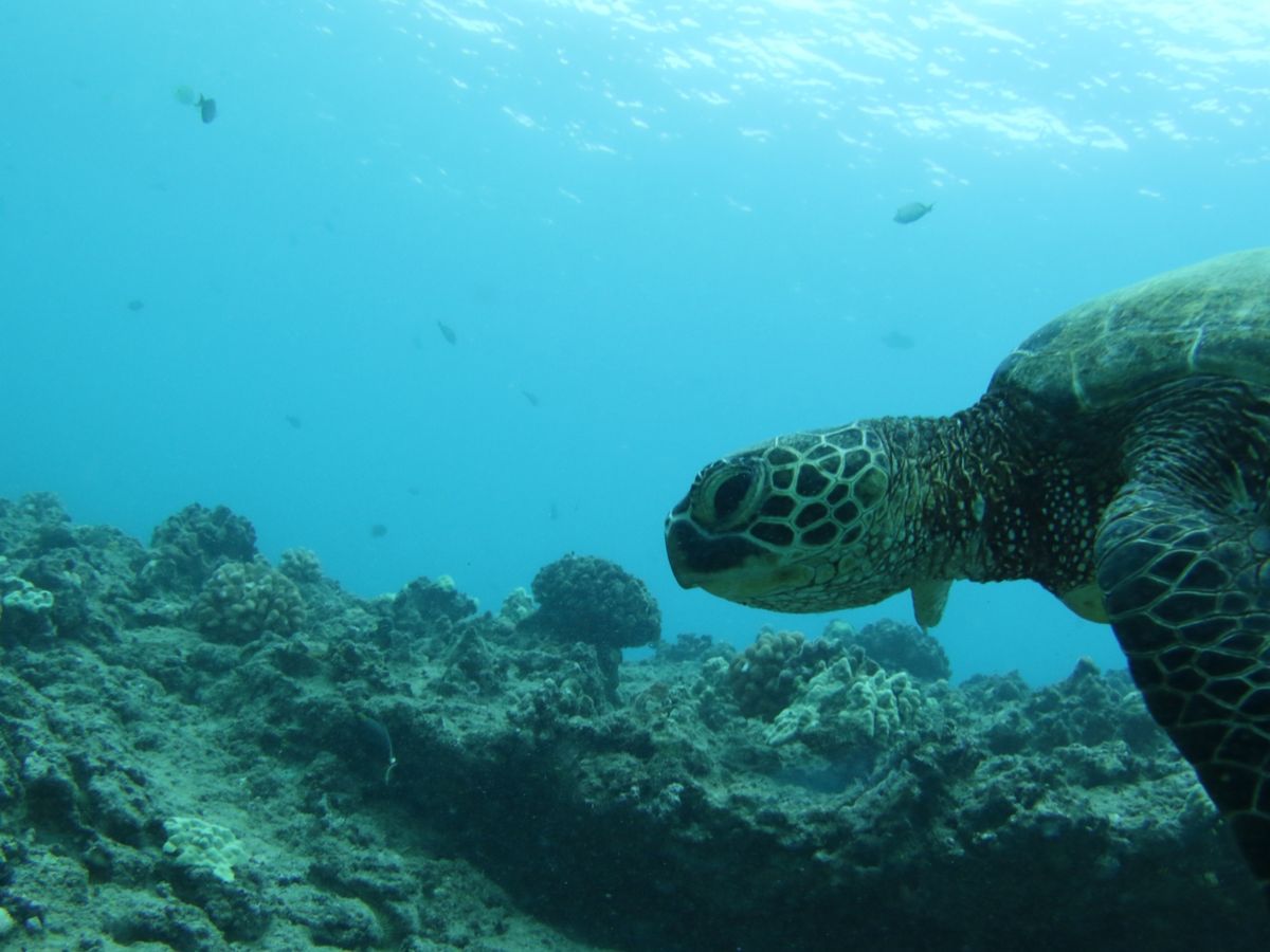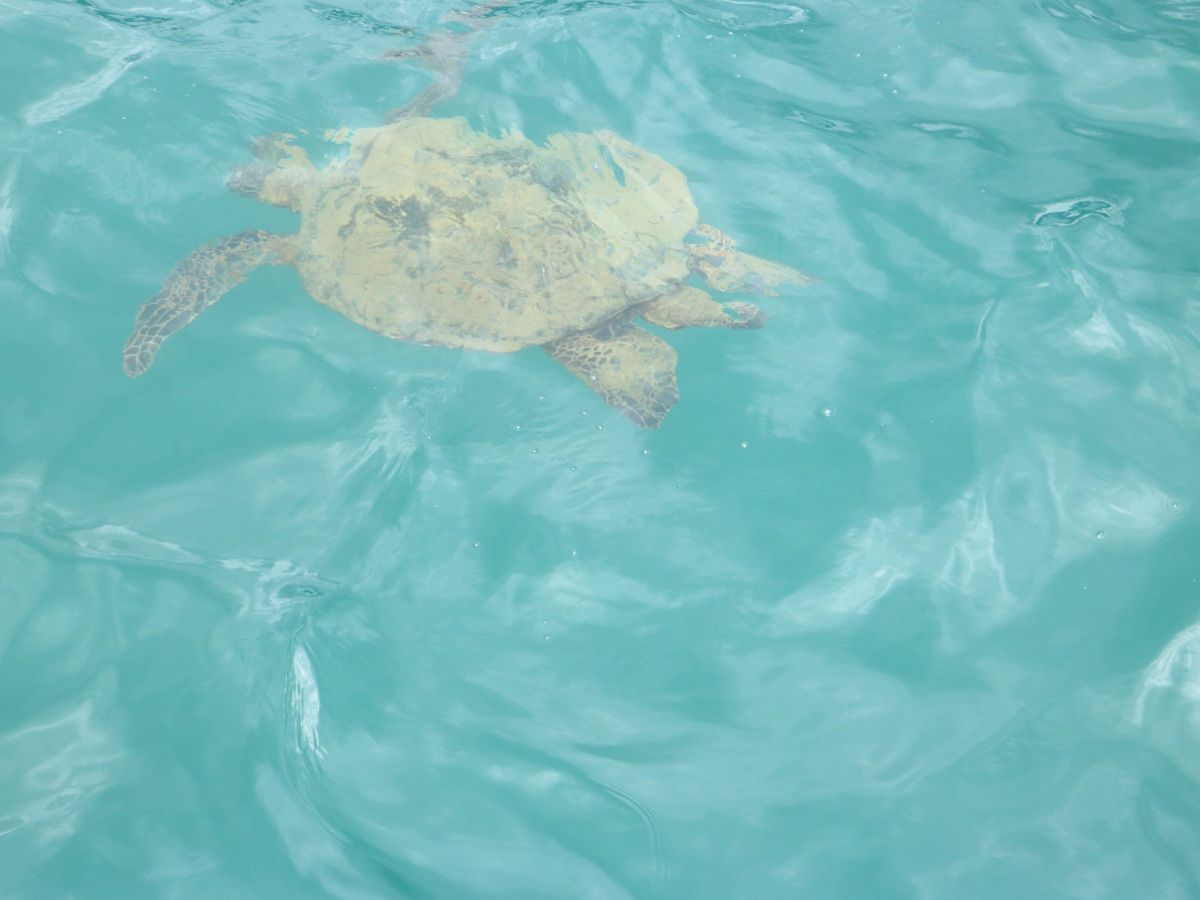 そしてウミガメもいっぱい見れました。後半別の場所でシュノーケリングをするのですが、私たち夫婦は船上でみなさんの様子を見てましたが、シュノーケリングしてる方のかなり近くまでウミガメが泳いでました。