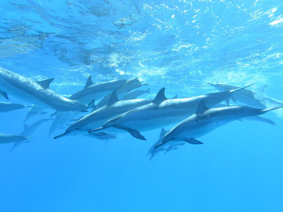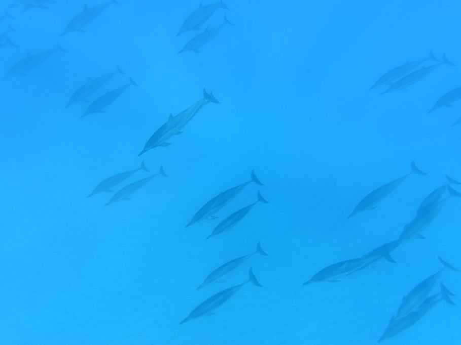 何十分かしてからイルカの群れが見つかり、レンタルしたウェットスーツを着て、シュノーケルを開始しました。