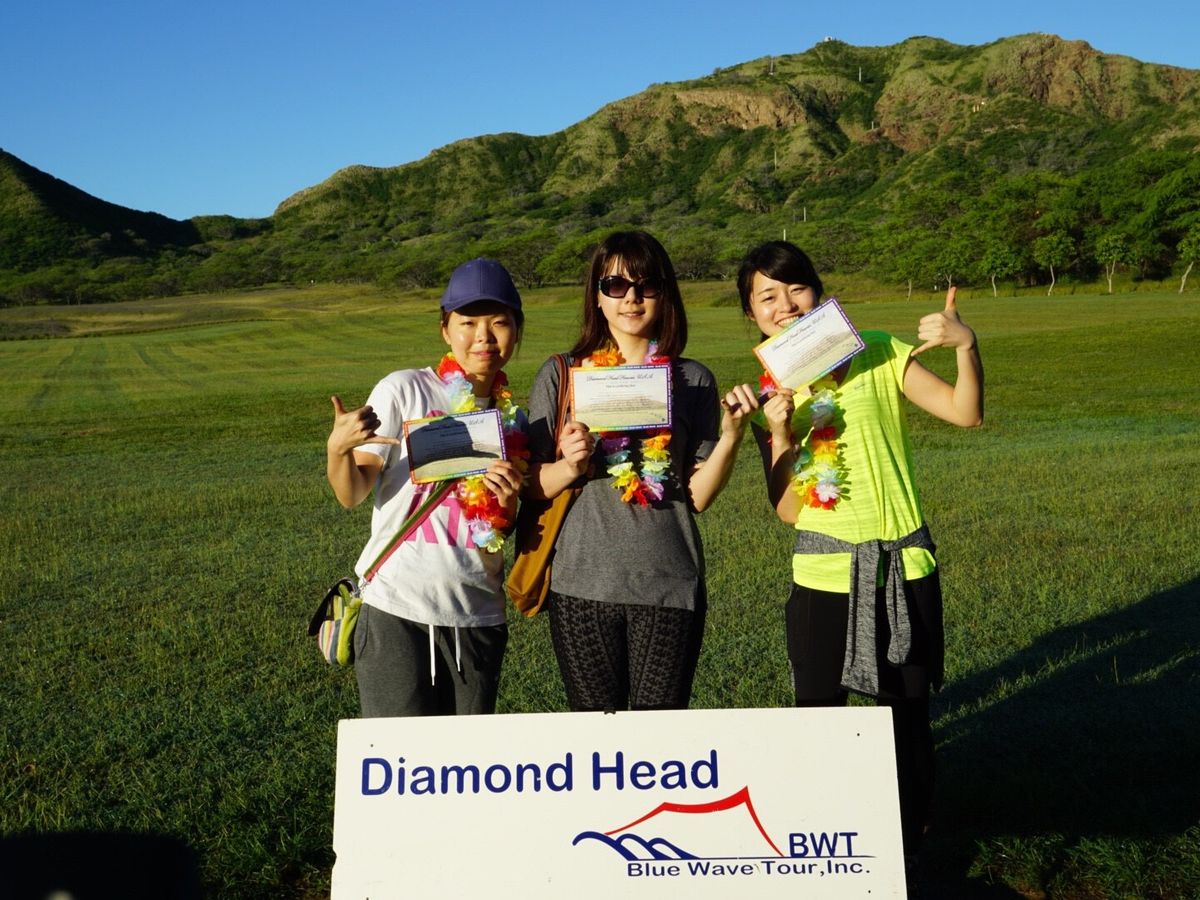 ダイヤモンドヘッドを登るのに、説明会がありましたが、日の出前の暗闇の中だったので、バスを降りてから説明会の場所まで行くのに、足下が見えないし、ダイヤモンドヘッドも登る道中も、携帯の灯りで、照らせましたが、前もって言って頂けたら助かります。