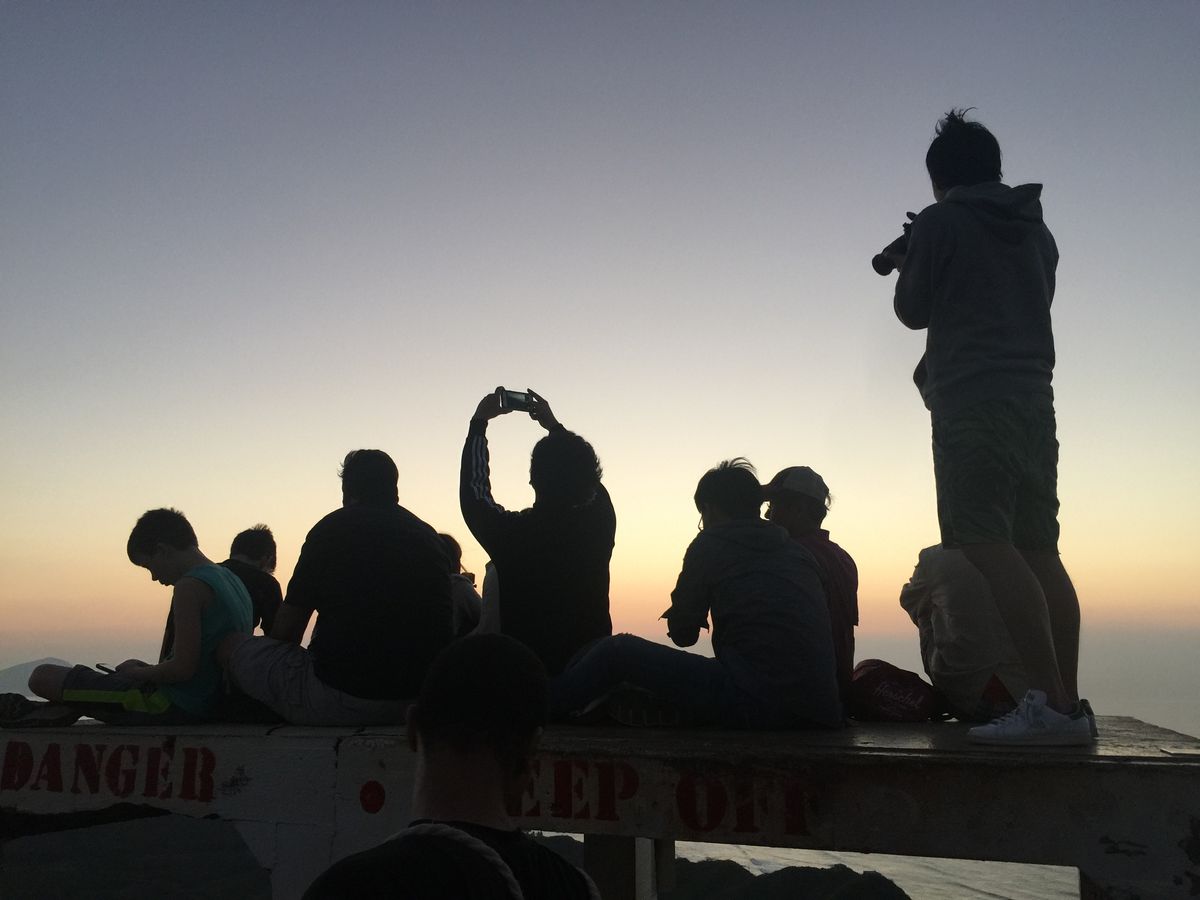 当日は少し雲っていて肌寒い感じでしたが、登っている途中から段々暑くなってきました。頂上に着く前の道が少しキツく大変でしたが、頂上に着くと、とても気持ち良くそんな事は忘れていました。残念ながら朝日は見れませんでしたが良い思い出になりました。