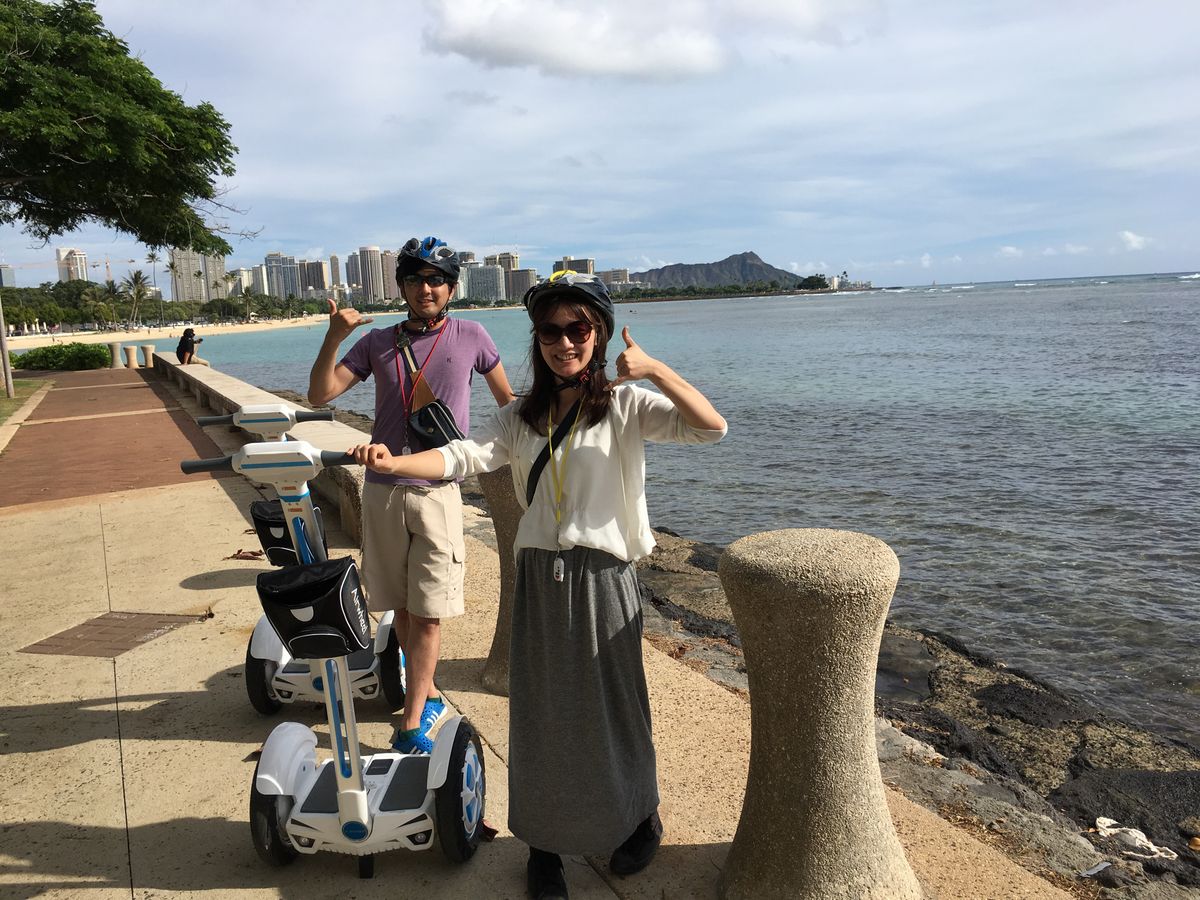 新婚旅行でハワイを訪れた20代女性です。私達夫婦は元々日本のTV番組で芸能人がハワイでセグウェイに乗っているのを観て「私達も乗ってみたい!」と期待してました。いざハワイで予約しようとしたところ、セグウェイは3週間先まで予約が埋まっていて泣く泣く乗ることができませんでした。しかし、セグウェイに似たエアウィールであれば乗れることが分かり、期待を胸に応募してみました。