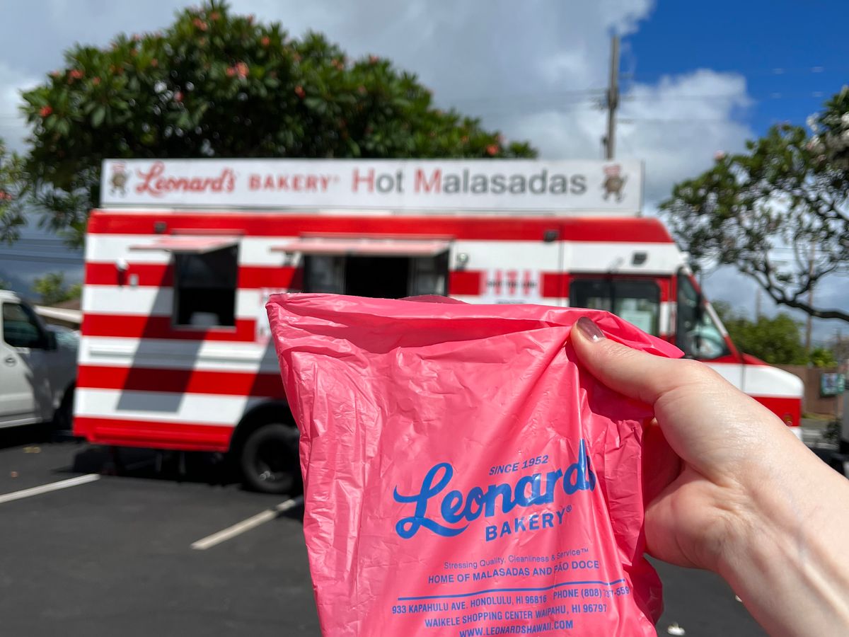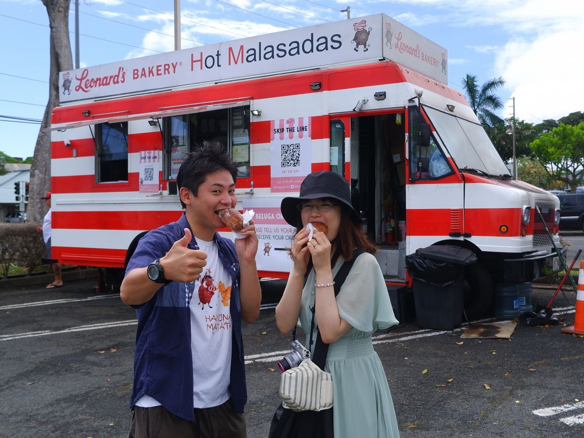 いつも行列がてきてるレナーズ本店ではなく、フードトラックのレナーズで揚げたてのマラサダを食べることができて、本当に美味しかったです!