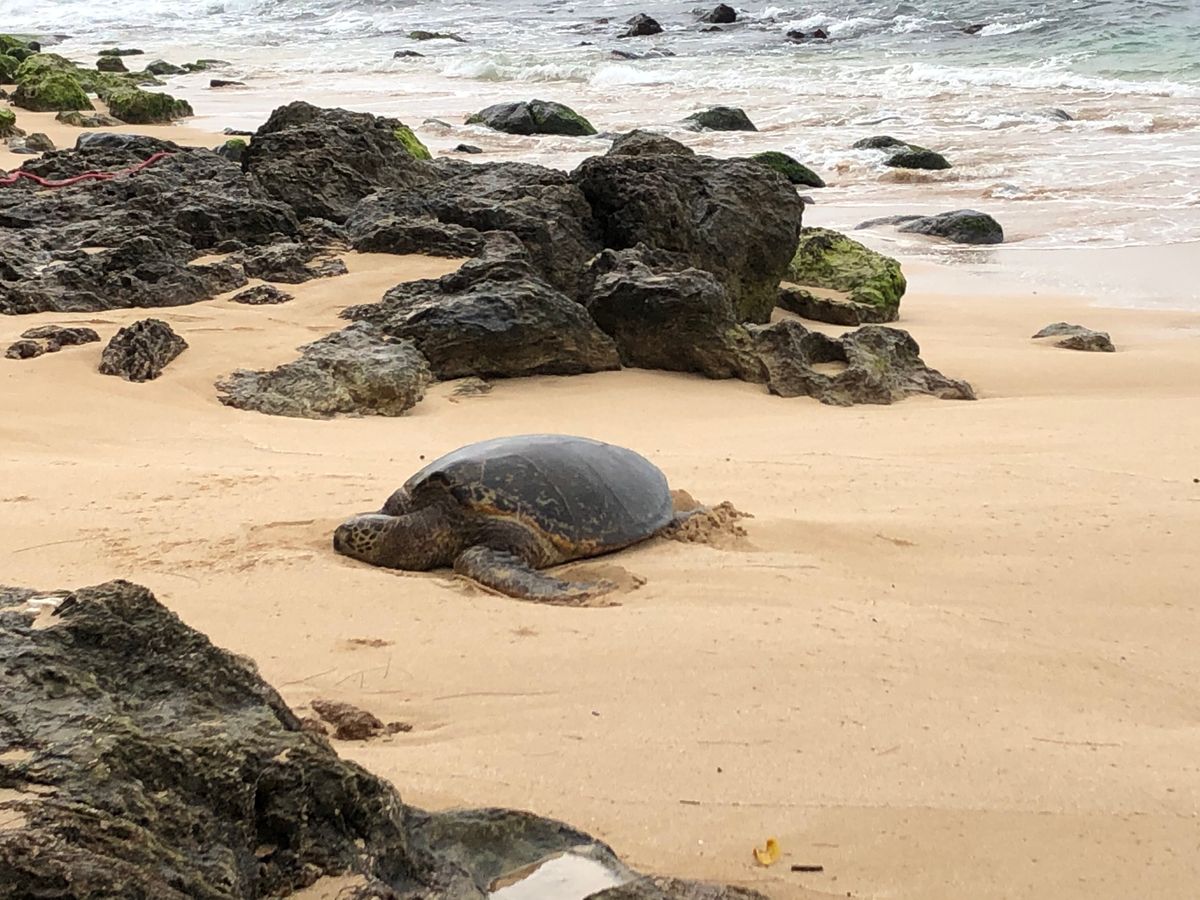 亀も見ることができました。ワイキキに戻って来たら、ワイキキの海でもが亀たくさんいて、びっくり!